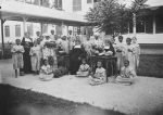 De eerste Zusters van Roosendaal op het terrein achter het klooster aan de HenckArronstraat, waar thans o.a. de Kanselarij van het Bisdom is gevestigd.