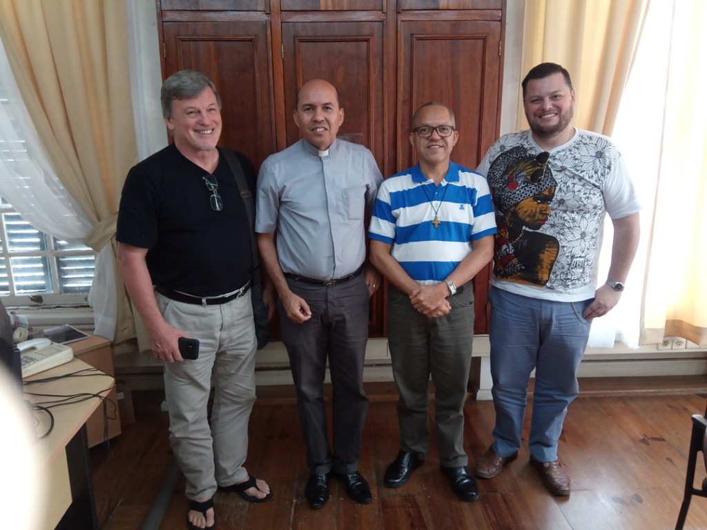 De overste van de redemptoristen regio Suriname, pater Roque Silva Alves, heeft van 9 t/m 12 mei een bezoek gebracht aan zijn medebroeders in Paramaribo. Pater Roque is ook de president van de Unie van de Redemptoristen in Brazilië (URB). Gedurende de dagen van zijn bezoek hebben de redemptoristen samen met pater Roque gesprekken gevoerd en bezinning gehouden over de actuele situatie van hun missie in Suriname. In het bijzonder hebben ze aandacht geschonken aan zalige Petrus Donders en zijn voorbeeld als missionaris. De intentie is dat ze steeds meer naar mogelijkheden zoeken om de devotie aan onze Peerke te promoten, niet alleen in Suriname maar ook in Brazilië. De bezinning heeft hen bemoedigd om door te gaan met de evangelisatie. Zeer enthousiast over de missie in Suriname, wilde pater Roque ook de parochies waarin de redemptoristen werken, bezoeken. Er was ook tijd vrijgemaakt voor een vruchtbaar gesprek met de vicaris-generaal, pater Esteban Kross, waarin de overste de toezegging deed de missie van de redemptoristen in Suriname door te zetten en alles te willen doen om de communiteit in Suriname te versterken. “Met het broederlijke bezoek van onze superieure overste, voelen we ons vurig om de overvloedige verlossing van de Heer met creativiteit, liefde en geloof te blijven getuigen,” zegt pater Ricardo van de parochie Maria Koningin van de Wereld. “Onze hoop en gevoeligheid willen wij delen met de meest verlaten van onze tijd en land en van elkaar houden.”