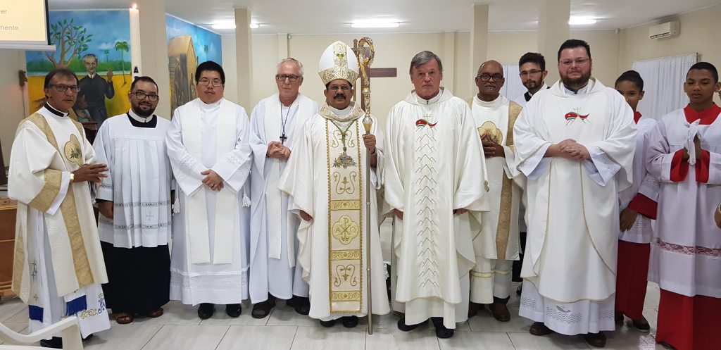 Onder toeziend oog van verschillende broeder-priesters en diakens is pater Joseph Patrick Dorcey C.Ss.R. op donderdag 23 mei jl. door Mgr. Karel Choennie in bezit gesteld van zijn ambt als pastoor van de parochie Nossa Senhora de Nazaré, Onze Lieve Vrouwe van Nazareth, aan de Jozef Israelstraat. Dit gebeurde in aanwezigheid van de Braziliaanse parochiegemeenschap. Pater Dorcey arriveerde in februari van dit jaar in Suriname om de Braziliaanse communiteit te ondersteunen.