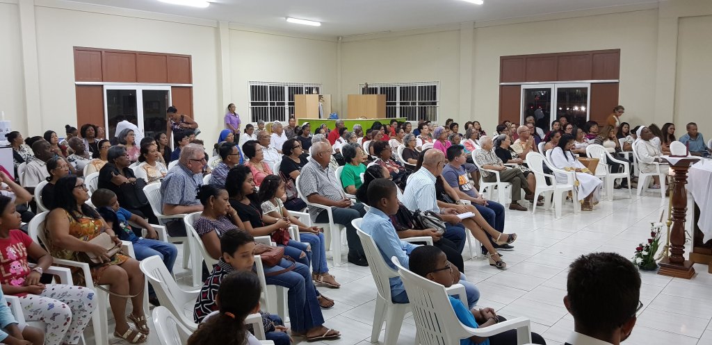 Tijdens de eucharistieviering vond ook de herdenking plaats van de 37ste jaardag van de zaligverklaring van Petrus Donders. In zijn preek tot de bomvolle kerk haalde Mgr. Choennie opnieuw de boodschap aan van paus Franciscus, namelijk dat we niet alleen goed moeten leven met onze medemens, maar ook met ons gemeenschappelijk huis: de natuur. Zuster Judith Maho deed de vertaling in het Portugees. Tot slot kregen de aanwezigen het nieuws dat het bisdom van Paramaribo een relikwie van Petrus Donders zal schenken aan de congregatie in Brazilië. De avond werd afgesloten met een gezellig samenzijn onder het genot van een drankje en mini salgados of Braziliaanse snacks.