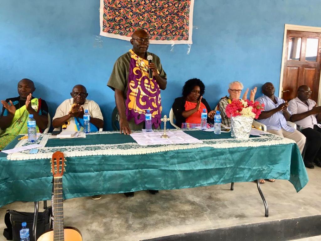 Rouw en rouwverwerking worden ervaren als het grootste probleem waarmee wij als vertegenwoordigers van de kerk te maken krijgen in ons werkgebied in het binnenland. De niet-christelijke familie respecteert de keuze van de overledenen vaak niet. Hierdoor ontstaan er spanningen binnen de familie die vaak uitmonden in een twist met de pastorale leiders (catechisten). De pastorale leiders hebben dan vaak geen keuze en zijn genoodzaakt tot op zekere hoogte de traditionele rouwverwerking maar te accepteren doordat de kerk hierin tekortschiet. In het document ‘Dede nanga libi, libi nanga dede’ van het bisdom dat in 1997 uitkwam, heeft het bisdom de traditionele rouw en rouwverwerking overwogen en zijn zienswijze kenbaar gemaakt. Het daarop aansluitende document ‘Te dede fadon’ dat in 2017 na gedegen onderzoek onder de Saramaccaners in concept door Pastoraal Saamaka is uitgebracht, is een handleiding voor de catechisten. Het bevat elementen waarin belanghebbenden zich min of meer kunnen herkennen. Dit document wordt getoetst en werd gepresenteerd en uitgelegd aan de bevolking van Matawai door Nelson Pavion.