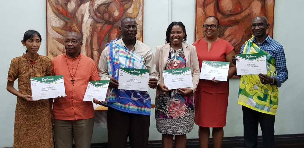 Aan de uitreiking ging een eucharistieviering vooraf in het kapel op de bovenverdieping van het Bisschopshuis. In zijn preek ging monseigneur Choennie in op de uitdagingen van deze tijd voor de pastorale medewerkers: namelijk het digitale tijdperk en de boodschap van paus Franciscus in zijn boek Laudato Si. “We merken nu dat we niet alleen samen moeten leven met elkaar, maar ook met de planten en de dieren. De natuur maakt ook deel uit van God’s schepping.” Geslaagde Jenny Sopawiro vond de opleiding intensief maar heeft ervan genoten. “Ik hield van de colleges en ik heb veel uit geleerd.” Sopawiro behoort tot de derde lichting. “Toen ik in 2008 bij de eerste lichting gevraagd werd om mee te doen, wilde ik niet, maar bij deze voelde ik me geroepen.”
