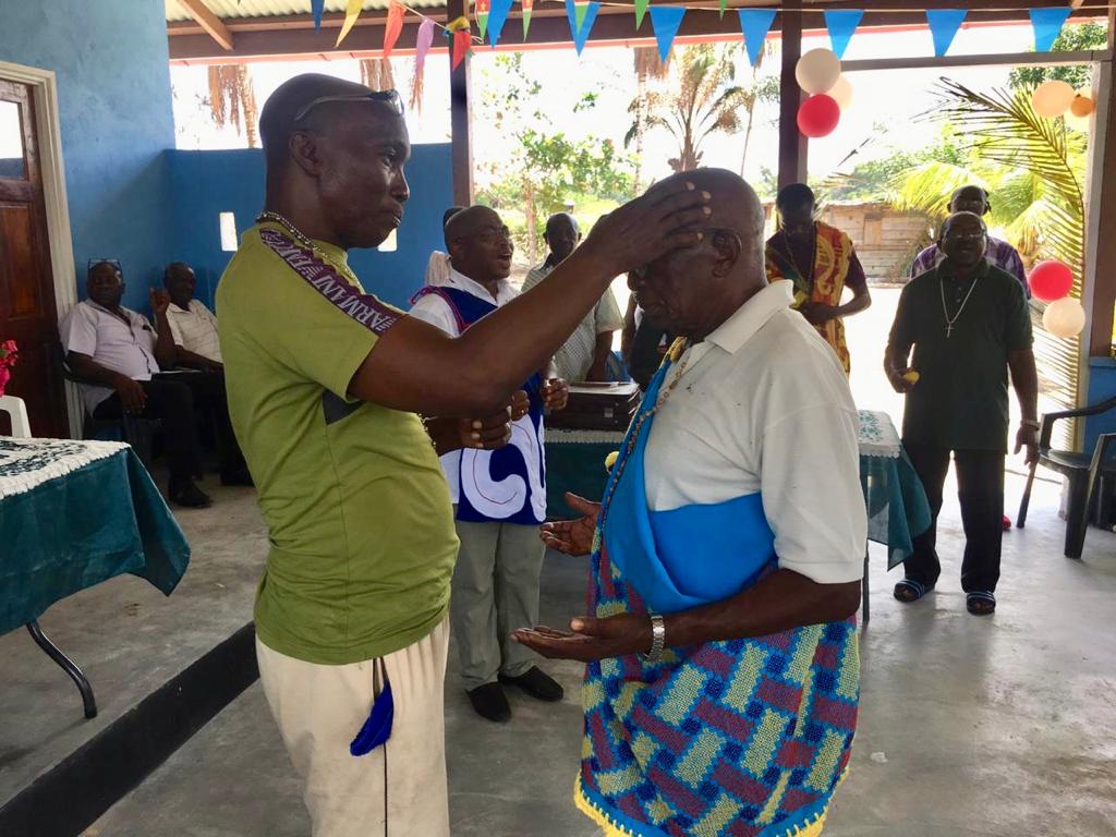 Het was ook nodig de aanwezigen duidelijk te maken wie een catechist is en wat zijn/haar werk inhoudt. Broeder Johan Eersteling ging kort hierop in: “Catechisten zijn mensen, die uit uw midden zijn uitverkoren en gestuurd zijn naar de vijfjarige catechistenopleiding. Na hun vorming worden zij officieel door de bisschop gezonden om samen met u op weg te zijn, u te bedienen en te leiden op de weg van Christus.” Hij benadrukt dat het pastoraal werk liefdeswerk is en dat de catechisten geen salaris ontvangen. Hij riep de totale gemeenschap op om de plaatselijke catechisten in woord maar vooral in daad bij te staan en gezamenlijk het pastoraal werk ter hand te nemen. “Dat wij hier vandaag zijn, komt echt door eigen inspanning van de catechisten zelf. Soms maken we privé schulden om dit werk te kunnen doen. Wij worden nu en dan ook door goede vrienden en relaties en door de regiopriesters ondersteund. Wi sa mek’ en bika a blesi fu Masra moro waarti. Te un go na uku noso na gron, no fergiti den catechist. Den kan gebruik wan anu bana, fisi noso meti her’ bun.”