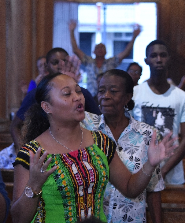Heb je ooit een dienst meegemaakt, waarbij je de volgende dag nog vol was van alles wat de Heer voor je heeft gedaan tijdens deze bijeenkomst? Dat was voor mij zeker het geval tijdens de bevrijdings- en genezingsdienst van vrijdag 5 juli jl. in de St.-Petrus en Paulus basiliek. Deze gebedssamenkomst, georganiseerd door de Katholieke Charismatische Vernieuwing (KCV) Paramaribo in samenwerking met KCV Moengo, had als thema psalm 95,6 ‘Een machtige God is de Heer, kom laat ons Hem aanbidden’.