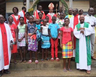 Het was een grootse ontvangst overal waar de bisschop kwam. De gelovigen waren in groten getale gekomen om de bisschop welkom te heten met hun hartelijke gastvrijheid. Op zaterdag doopte Mgr. Karel bij uitzondering een drietal kinderen en 1 man. De vreugde werd verhoogd door een bezoek aan ouderen en de vormselviering de volgende dag. De hele kerk was heel mooi met pangi’s versierd voor die gelegenheid. Overal waren er blijde gezichten. Een seketidans, gezang, uitwisseling van cadeaus mogen gerust een uitbeelding genoemd worden van vertrouwen en hoop voor onze kerk. Op maandag werd Ligorio gegroet en ging de delegatie richting Semoisi. Dat was weer de rivier afwaarts varen over twee grote natuurlijke dammen. Gelovigen uit het dorp en prachtig zingende kinderen van de school zorgden voor een heel mooie ontvangst. Na een kennismaking met de kapiteins van het dorp werd in de middag eucharistie gevierd. Ondanks het feit dat de kerk en school al een tijdje aanwezig zijn in het dorp, zijn er weinig bekeerden. Er is echter goede hoop, want er zijn kandidaten voor de katechistenopleiding. Dat kan de evangelisatie vergemakkelijken.