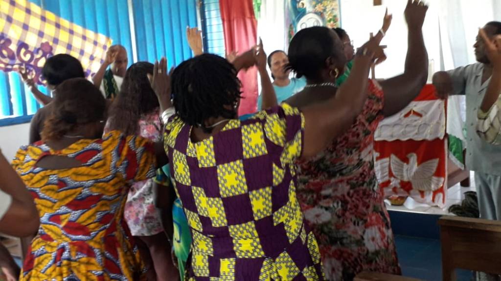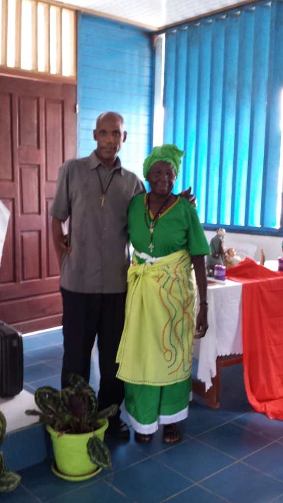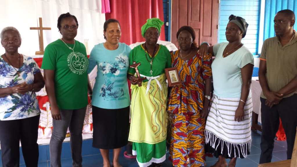 Zo mochten we ook genieten van de schoonheid van de natuur rondom ons en gesterkt worden door de getuigenis van de bijna 80-jarige oma Mathilda Pappati. Zij is een voorbeeld van wat gebed allemaal tot stand heeft gebracht in haar leven en in het leven van haar kinderen en kleinkinderen. Zuster Emmie Pinas, coördinator van het district Marowijne voor Biddende Moeders, heeft het contact gelegd met de Biddende Moedersgroep in Frans-Guyana (PK 9) onder leiding van Zwenny Pappati, die bereid was om dit weekend te organiseren.
