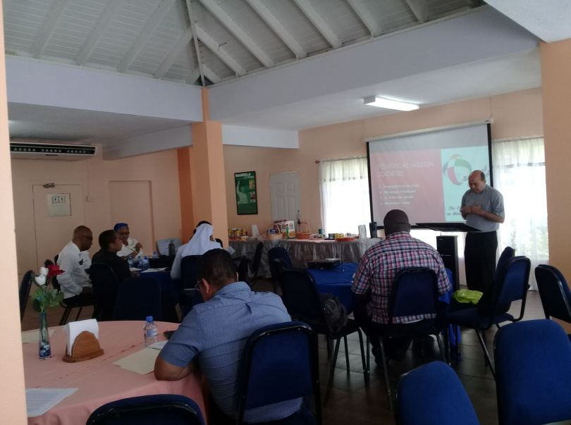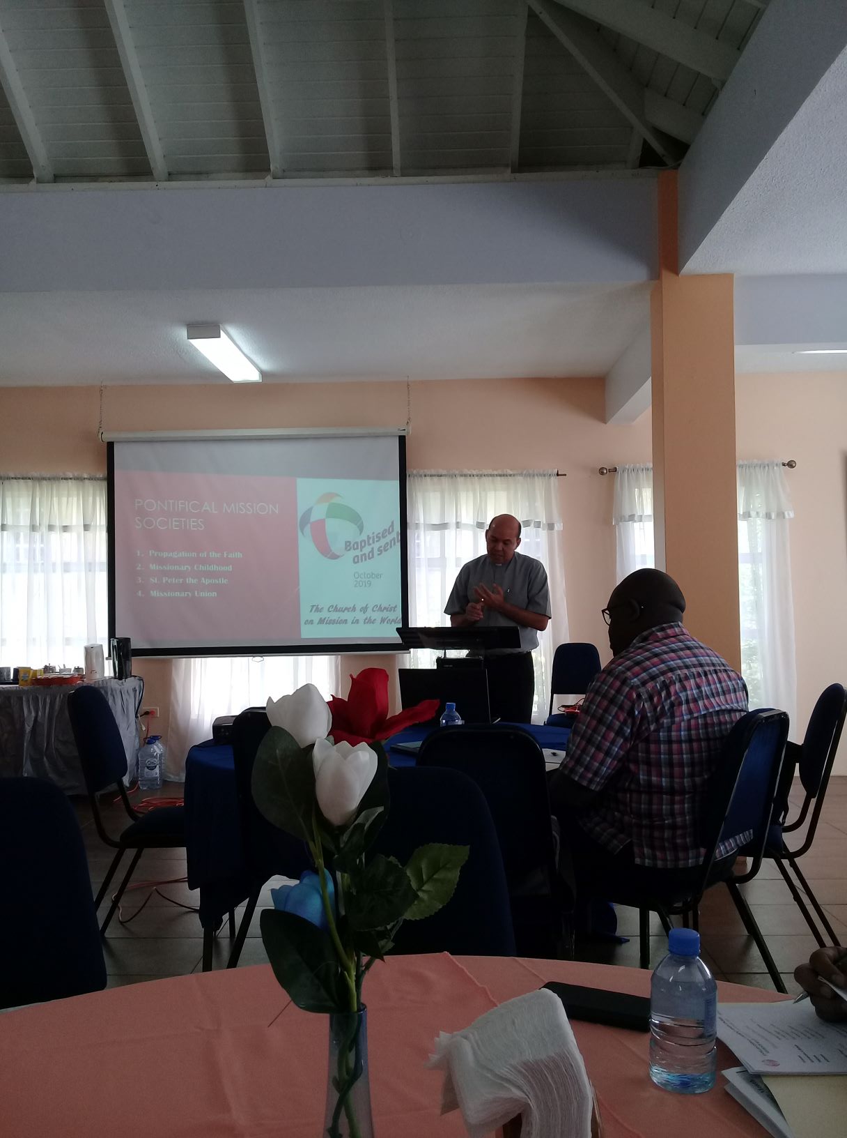 Pater Kross, die National Director is en de Pauselijke Missiewerken vertegenwoordigt voor alle Caribische bisdommen, ging in op het doel, de structuur en werkwijze van deze organisatie binnen de Kerk.
