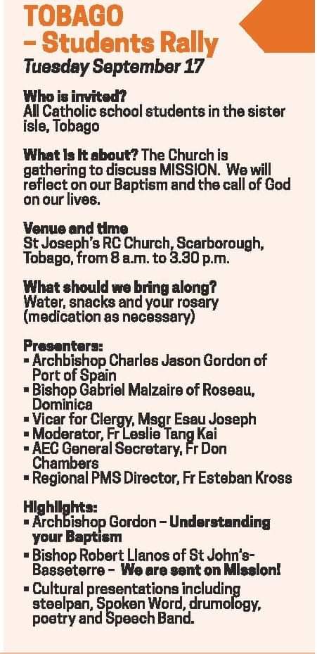 Gisteravond zijn alle Diocesan Directors per vliegtuig vertrokken naar Tobago om de rally mee te maken. Ik was er zelf jammergenoeg niet bij en kan daarom ook geen persoonlijke indrukken met u delen. Hieronder wel enkele foto’s die de sfeer weergeven.