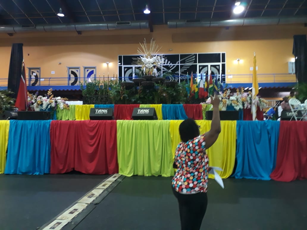 We kwamen zondagmorgen aan in het Center of Excellence en kregen te horen dat helaas ook het hele programma was aangepast. De Trinidadiaanse overheid had “code red” doen uitgaan in verband met de weersomstandigheden. Men verwachtte hevige regen met overstromingen. De organisatie kon niet anders dan het programma flink in te korten zodat de bezoekers op tijd naar huis konden. Heel jammer, zodoende misten we twee interessante presentaties die gepland waren. Ook de culturele presentaties die door de delegaties waren voorbereid konden niet doorgaan.
