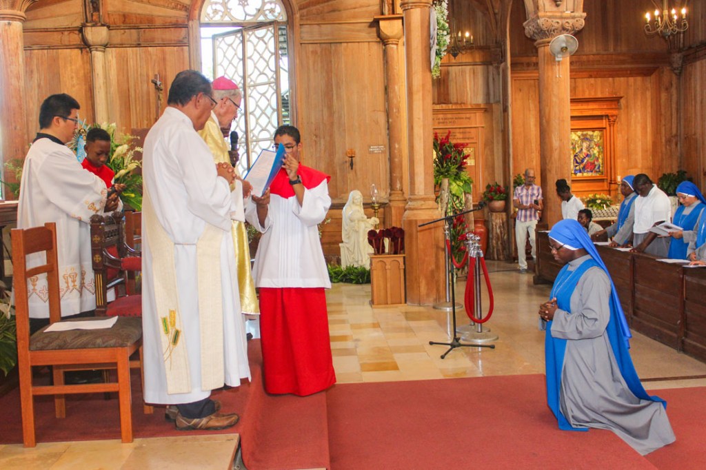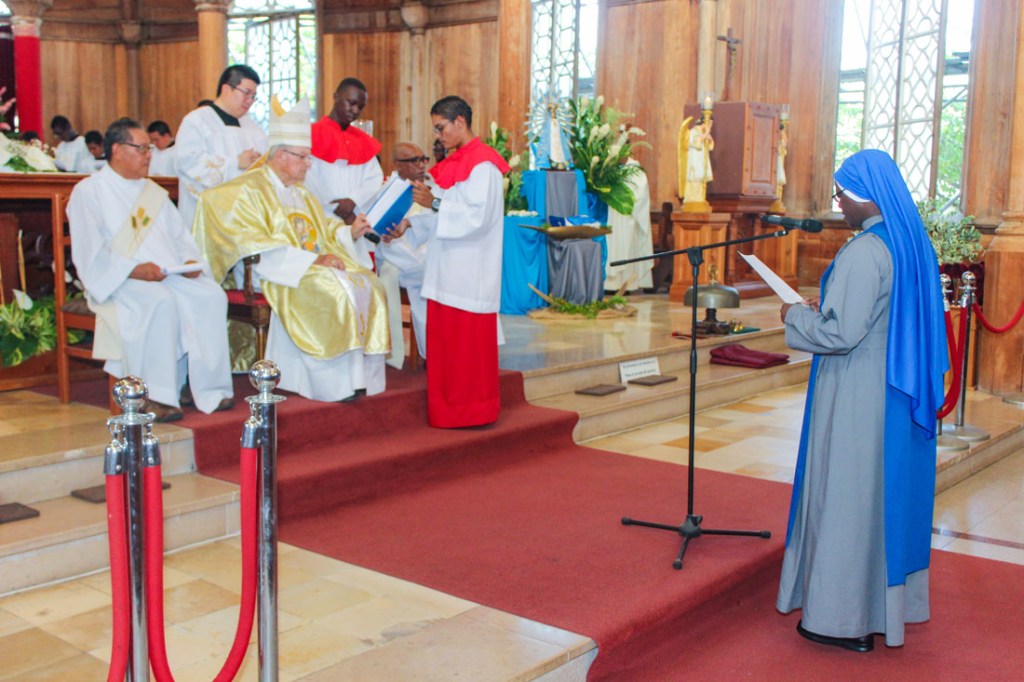 Op donderdag 5 september jl. had ik de grote genade om voor eeuwig mijn religieuze geloften van armoede, gehoorzaamheid en kuisheid af te leggen. Het lijkt voor mij en vele anderen nog heel kort geleden sinds ik op 25 april 2011 het klooster intrad. Maar tussen die datum en 5 september jongstleden is er zoveel gebeurd. Ik mocht namelijk op 20 oktober 2013 in deze zelfde kathedrale basiliek voor het eerst mijn tijdelijke geloften afleggen waarbij mijn witte sluier vervangen werd door de blauwe. Op die dag had ik al voor mijzelf besloten dat ik voor eeuwig mijn leven aan God zou wijden. Maar de Kerk in haar wijsheid geeft aan elke religieuze de ruimte om genoeg ervaringen op te doen om deze uiteindelijke beslissing te nemen. Dus moest ook ik zes jaren wachten zoals gebruikelijk in ons instituut voordat ik voor eeuwig mijn geloften mocht afleggen.