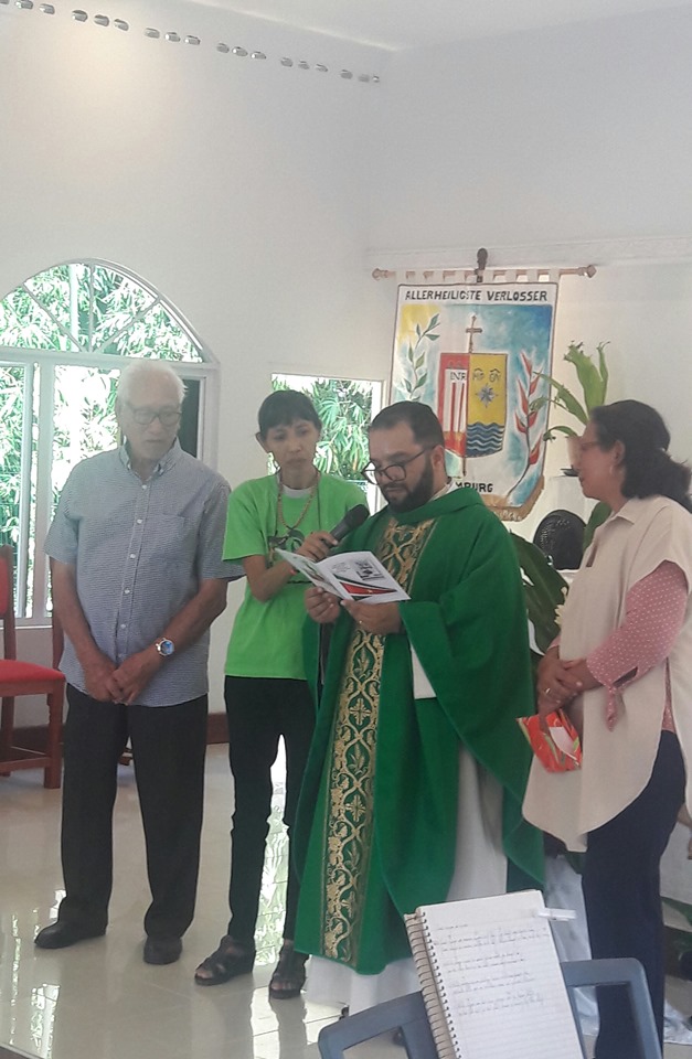 In de kathedrale basiliek was het opmerkelijk. Pater Gilson kreeg een bankje om op te staan, omdat de preekstoel te hoog voor hem was. God heeft hem niet veel lengte gegeven, maar wel een groot en moedig hart. Want slechts de moedigen van hart durven hun vertrouwde omgeving te verlaten voor een vreemd land waar men een totaal andere taal spreekt. En zoals pater vertelde, had hij nog nooit eerder per vliegtuig gereisd. Dus was hij wat huiverig. Maar degenen die hun vertrouwen stellen in de Heer, laten zich steeds door Hem leiden.