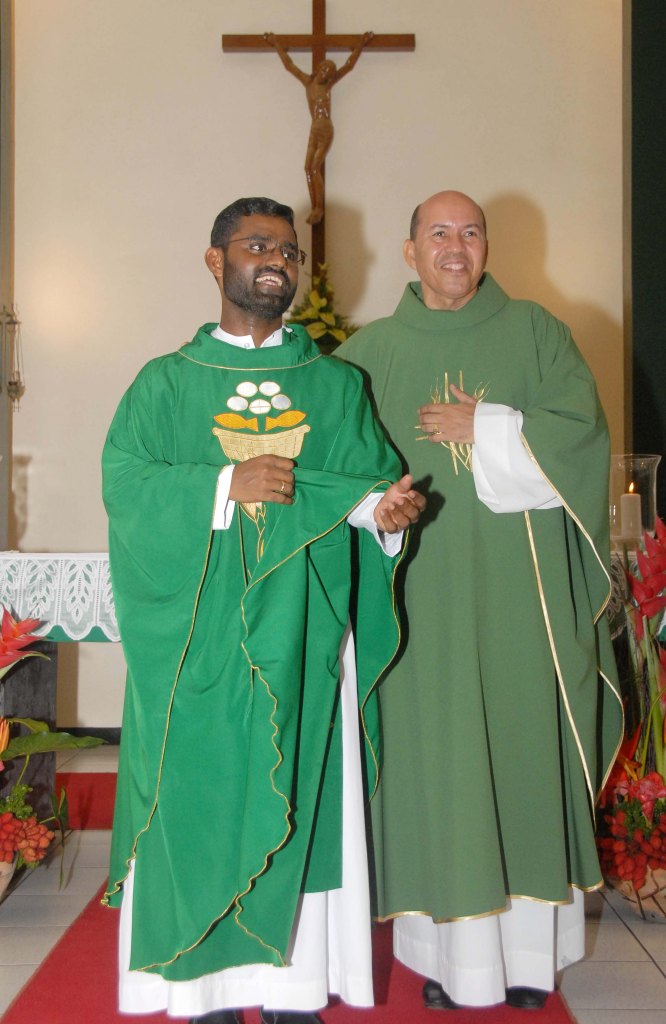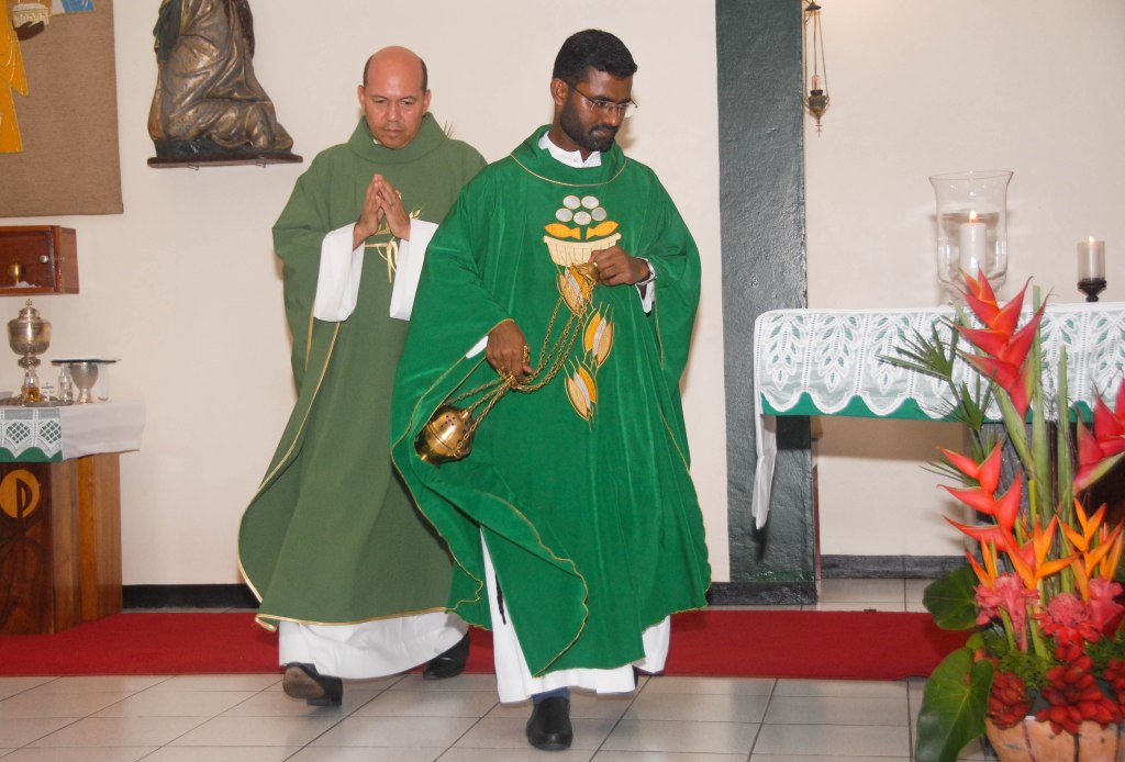 Op 19 oktober 2019 heeft de overdracht van het pastoorschap over de parochie Paramaribo-Noord plaatsgevonden. In een (bijna) volle Heilige Driekoningenkerk aan de Verlengde Mahonielaan is een plechtige en feestelijke eucharistieviering gehouden bij de installatie van de nieuwe parochiepriester en het afscheid van zijn voorganger. Naast vicaris-generaal pater Esteban Kross (als vertegenwoordiger van Mgr. Choennie), pater Kumar (nieuwe pastoor) en zijn voorganger pater Jan Verboogen concelebreerden pater Jan Geerits, pater Toon, pater Ike en pater Patricío. Dertig misdienaars van de cluster Paramaribo-Noord gaven hun ondersteuning aan deze tweeënhalf uur durende bijzondere viering. Het Salvatorkoor onder leiding van zuster Christine FCH luisterde de dienst op met prachtige koorzang en muzikale begeleiding op het orgel door Roger. Naast de vele aanwezigen uit eigen parochie en parochianen uit andere parochies waar pater Kumar en pater Jan diensten hebben gehouden, gaven ook acte de présence vertegenwoordigers van de EBGS-kerk Combé, de zusters Fransiskas Charitas en de drie zusters van The Daughters of Divine Love (DDL) uit Nigeria. Radio Immanuel met Patrick heeft deze viering ook opgenomen voor uitzending op een later tijdstip. Het was prachtig weer tot in de late avonduren.