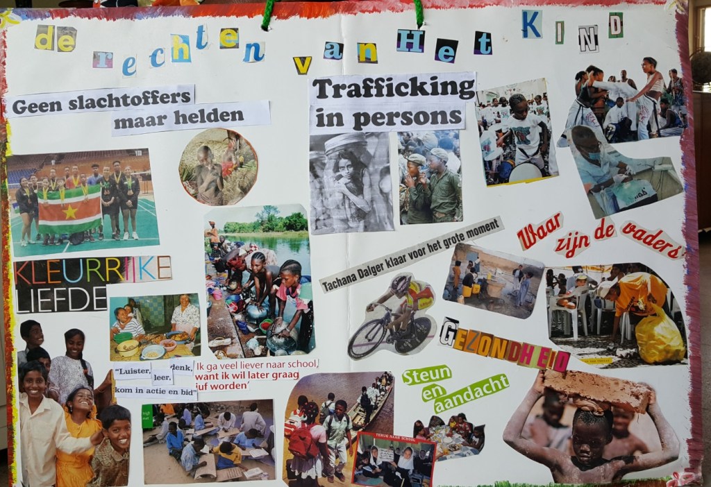 Kinderrechten wil zeggen: kinderen hebben rechten om te doen wat mag gebeuren met hun eigen leven. Kinderen hebben het recht om geen arbeid te verrichten of kinderarbeider te zijn. Kinderen moeten hun vrijheid krijgen, ze mogen vrij zijn wat met ze gebeurt. Kinderen mogen niet mishandeld worden. In andere plaatsen van Suriname kunnen kinderen niks doen wanneer ze worden mishandeld. Kinderen mogen hun eigen keuzen maken met hun ouders. Maar jij als kind hebt het recht om een levenskeuze te maken. Kinderen hebben het recht om te blijven met hun ouders. Sommige mensen kijken naar kinderen net als hun huisdier, want soms worden ze slaaf in huis. Kinderen moeten goed eten, want zij zijn ook mens. Kinderen worden door hun eigen stiefvader of -moeder misbruikt. Kinderen hebben een recht dat mensen hen niet mogen aanraken zonder toestemming. Stop geweld tegen kinderen.