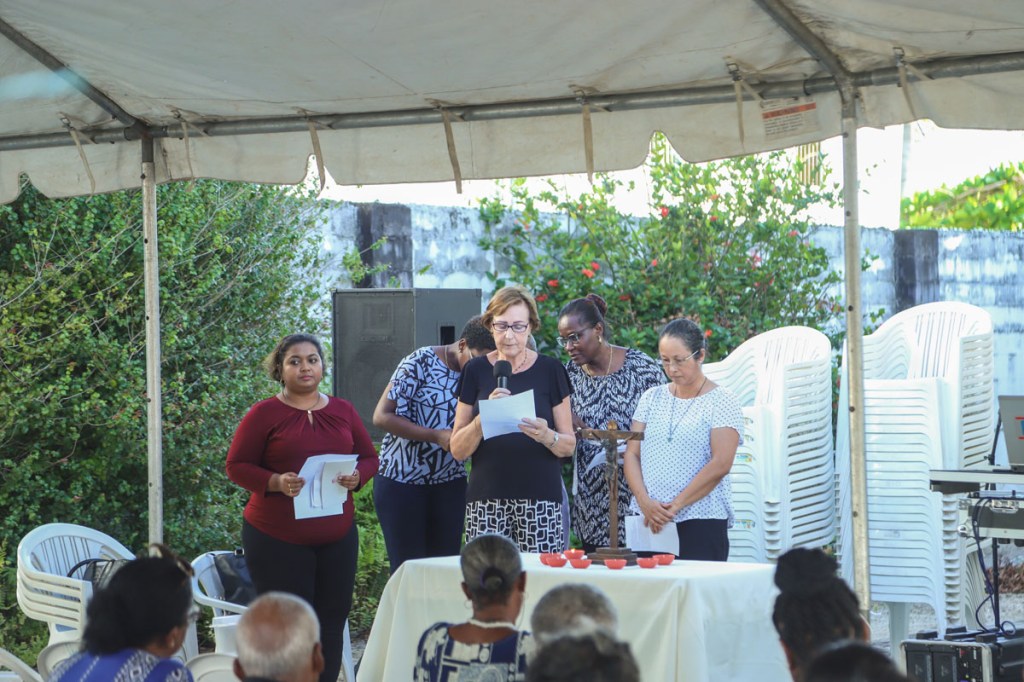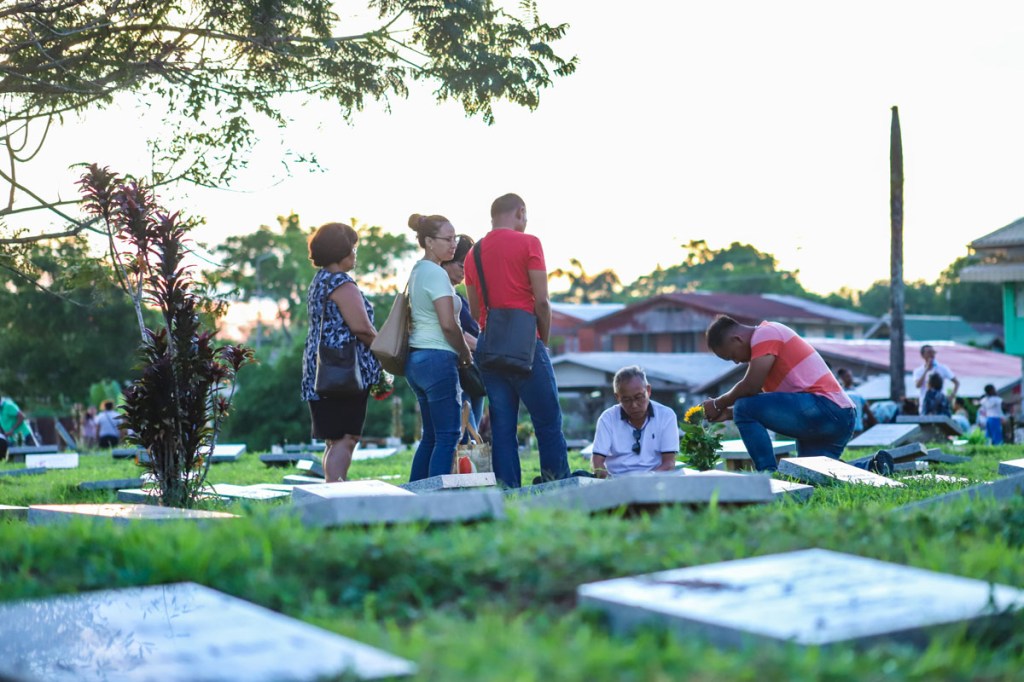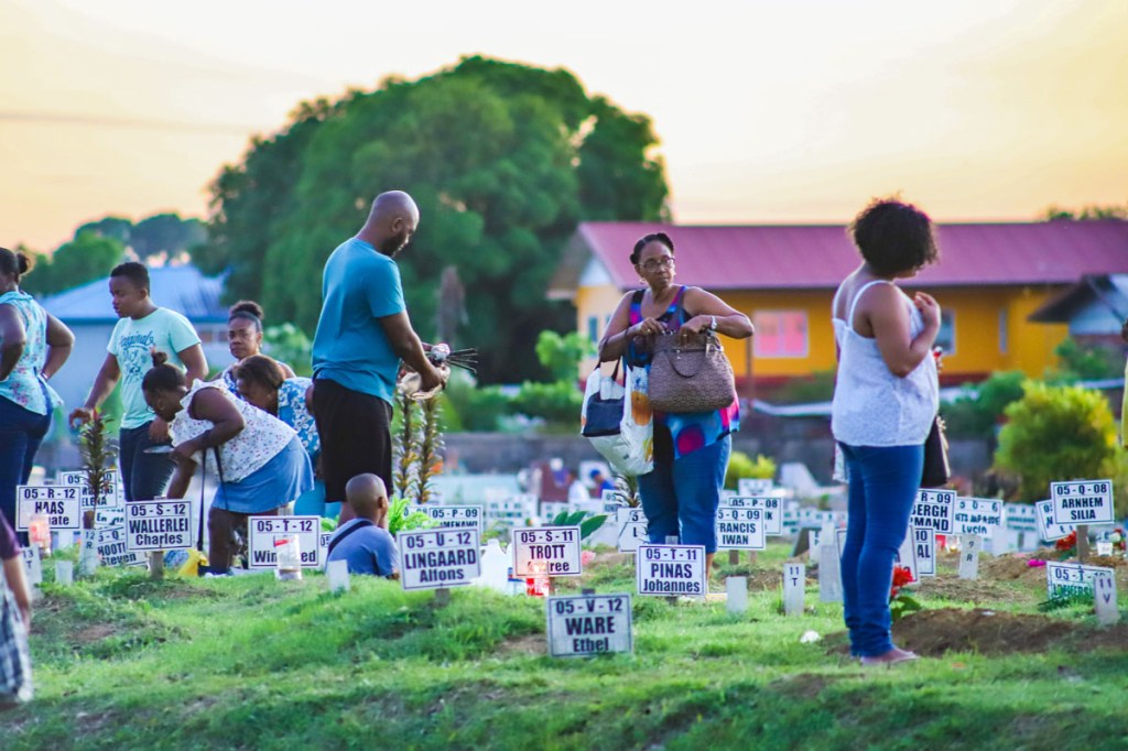 Jaarlijks vieren we in onze Kerk op 1 en 2 november respectievelijk Allerheiligen en Allerzielen. Op onze r.-k. begraafplaats was er afgelopen zaterdag 2 november traditioneel een Heilige Mis voor onze overledenen, waarin dit jaar pater Noordermeer voorging. Prachtige middag, zonnig en heet. Een bijzonder tintje werd dit jaar aan de viering gegeven door enkele dames van de groep rouwbegeleiders in opleiding. Bij het bisdom Paramaribo volgen 10 dames de opleiding met de bedoeling dat ze na afronding hun diensten kunnen aanbieden aan nabestaanden die het moeilijk hebben met de verwerking van het verlies van een geliefde.