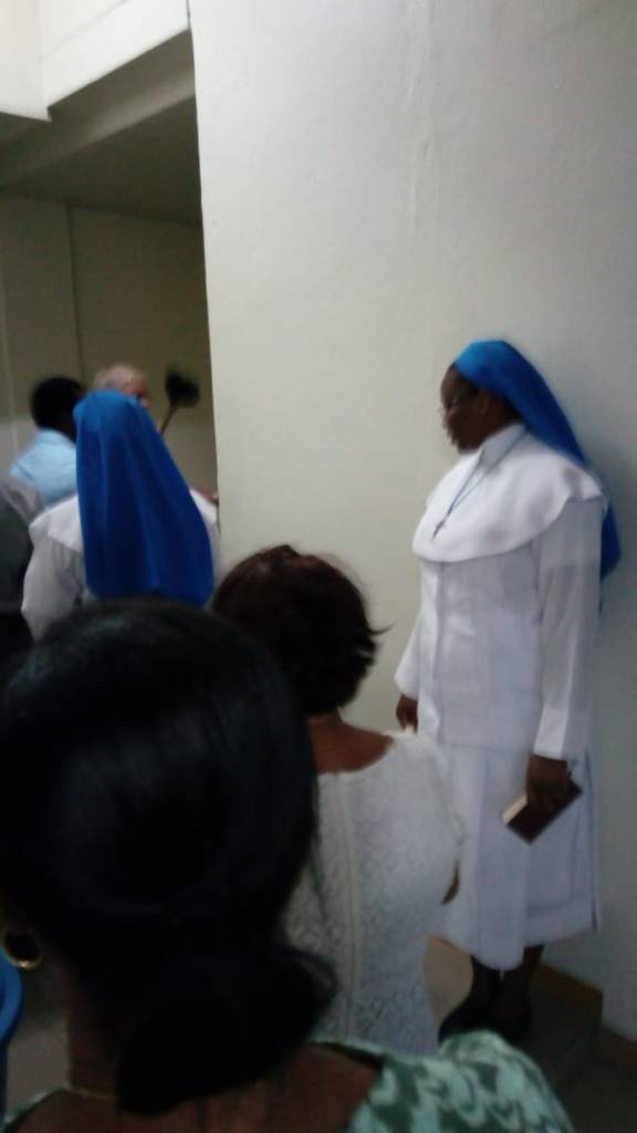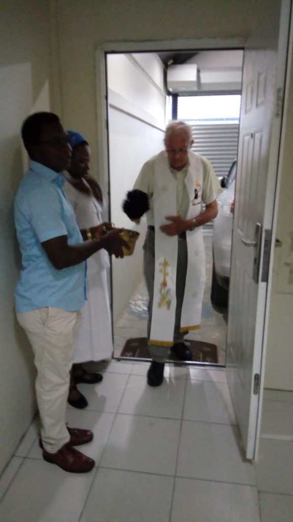 Onder voldoende belangstelling is op woensdag 23 oktober jl. het zustershuis van de Stichting voor het kind (Stivoki) door bisschop-emeritus Wilhelmus de Bekker ingezegend. Het is het klooster waar de zusters Henrietta Ozurumba, Stellina Okpalaku en Melvina Adimora hun intrek hebben genomen en zich voorbereiden op de komst van de eerste groep meisjes die hier opgevangen en begeleid zullen worden. Deze 3 Nigeriaanse zusters zijn leden van de congregatie Dochters van de Goddelijke Liefde. Op verzoek van Mgr. Choennie zijn zij door hun overste naar ons land gezonden om Stivoki bij te staan bij de herstart en opvang van misbruikte meisjes. De zusters hebben eerst gedurende enkele maanden in Nederland Nederlandse taallessen gevolgd en zijn op 12 september jl. in Suriname gearriveerd. Na de inzegening konden de aanwezigen onder het genot van een drankje en een hapje de woonruimtes van dit gerestaureerde opvanghuis bezichtigen. Hun bewondering voor het prachtige werk dat is gedaan door de aannemers werd niet onder stoelen of banken geschoven.