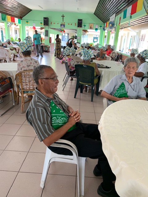 Stichting Fatimaoord is een bejaardentehuis waar 65 seniorenburgers wonen. Vrijdag 22 november jl. organiseerde de stichting in verband met Srefidensi een leuke dag voor haar bewoners. Wat hebben ze ervan genoten. Bewoners en personeel hadden allen een hoofddoek op die gesponsord was door Lamara. Het geheel werd opgeluisterd met muziek. De seniorenburgers hebben flink gezongen en natuurlijk ook de benen losgegooid. Daarna kon iedereen genieten van het lekkere eten en drinken. Met een voldaan gevoel gingen de bewoners terug naar hun kamer.Tot slot een woord van dank aan eenieder die een bijdrage gegeven heeft zodat onze seniorenburgers konden genieten van een andere invulling van de dag.