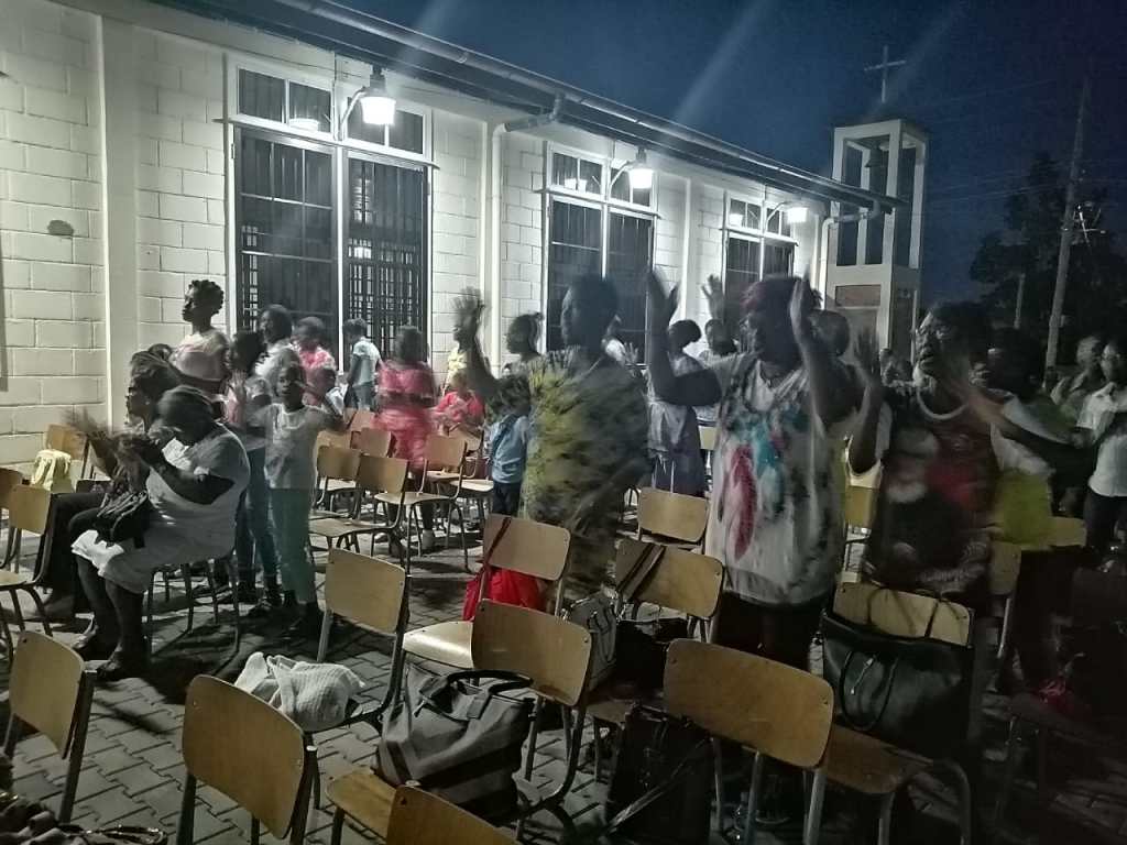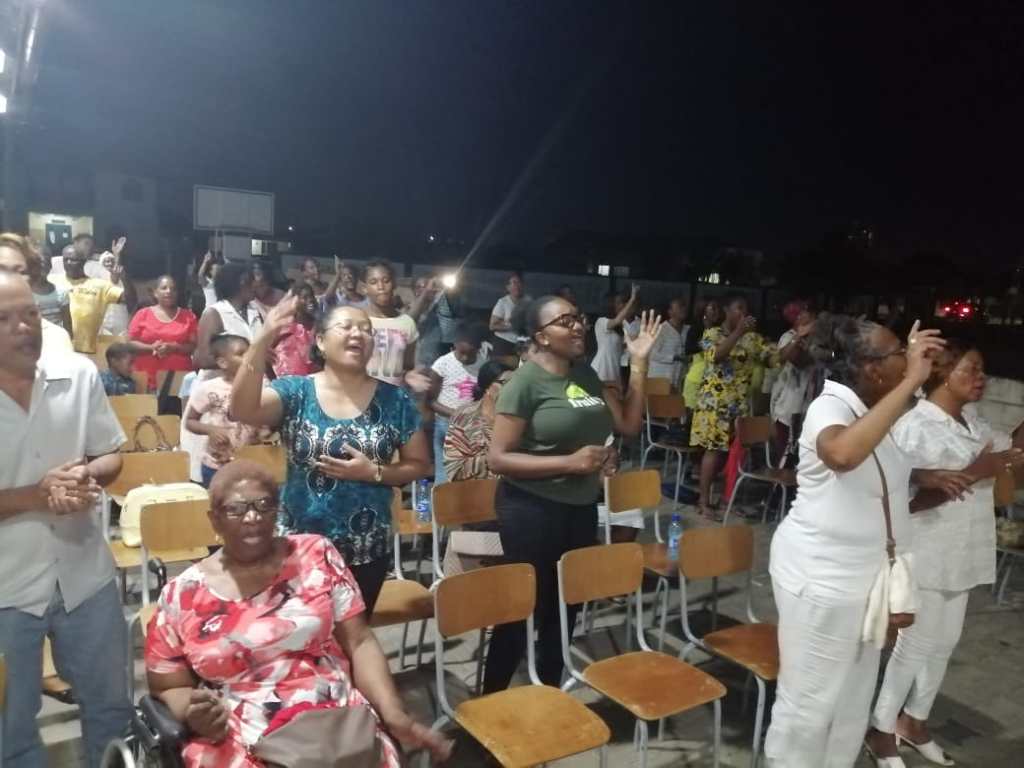 This little light of mine, I’m gonna let it shine zongen de parochianen die aanwezig waren bij de Praise & Worship-avond in de Barmhartige Samaritaanparochie in Flora. Met een theelichtje in de hand in de open lucht op het erf van de kerk klonk het gezang huizen ver. Eenieder zong uit volle borst mee onder leiding van de praise leader. The Praise & Worship-avond werd voor het eerst georganiseerd door de charismatische gebedsgroep van de Barmhartige Samaritaan. Sinds maart 2017 beschikt deze parochie over een charismatische gebedsgroep, die elke maandag van 6 tot 8 uur ‘s avonds bijeenkomt om de Heer te loven en te prijzen, en te luisteren naar het Woord. Zo was ook de Praise & Worship-avond opgezet, waarbij de parochianen kennis konden maken met lofprijzing en aanbidding naar God toe.
