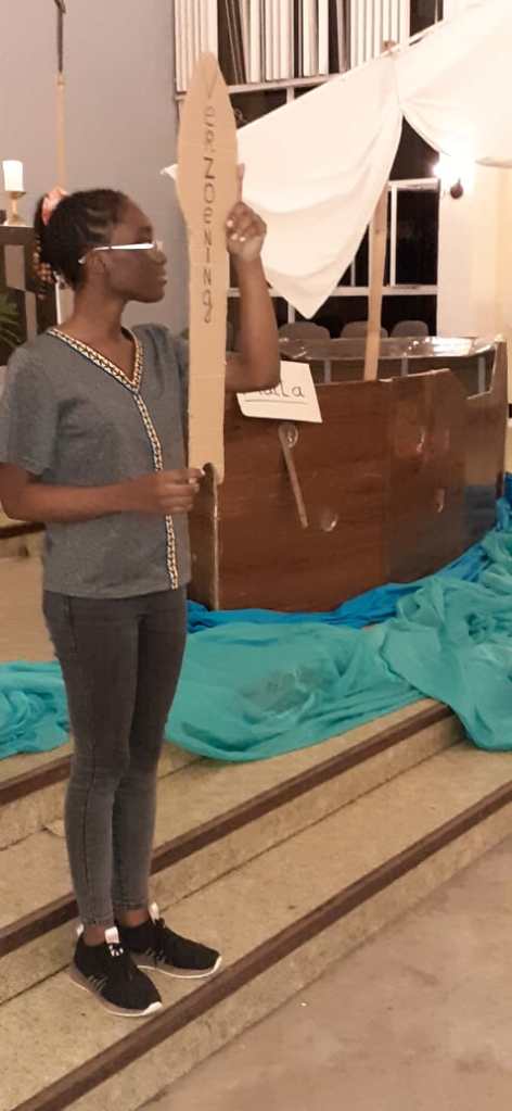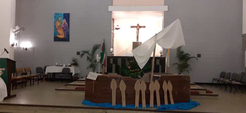 De viering werd geopend door pater Woei A Jin. Bij binnenkomst zag men een boot, die moest de boot voorstellen waarmee er naar Malta was afgereisd. De visualisatie van de voorbeden was heel creatief: op roeispanen was de nood van het gebed aangebracht. Deze werden door misdienaars naar voren gebracht en bij de boot geplaatst. De boot was ook een symbool, omdat we als mens niet opgewassen zijn tegen alle stormen van het leven. En een boot kan pas vooruit wanneer wij allen samen roeien. Gezien de moeilijkheden erkennen wij de noodzaak om samen te werken en onze krachten te bundelen. De noden waarvoor er gebeden is, zijn: verzoening, verlichting, hoop, vertrouwen, kracht, gastvrijheid, bekering en vrijgevigheid.