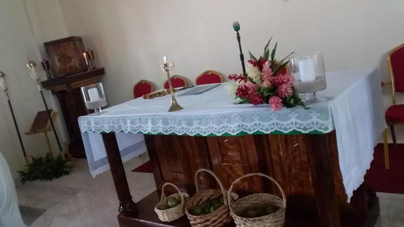 Rooms-katholieke gelovigen vanuit de Saramaccaanse gemeenschap hebben gewerkt aan de basis van deze nieuwe r.-k. kerk. De kerk is in eerste instantie bedoeld om te voorzien in de behoefte van de Saramaccaners die hun geloof tot uiting willen brengen binnen de eigen cultuur, taal en omgangsvormen. Nelson Pavion, de trekker en stuwende kracht van de werkgroepen, legt heel enthousiast uit hoe die behoefte is geconstateerd en hoe het voorwerk is geweest. Hij is een ervaren catechist binnen het bisdom Paramaribo en wordt vaak uitgenodigd om families te begeleiden bij onder andere Saramaccaanse rituelen bij een begrafenis.
