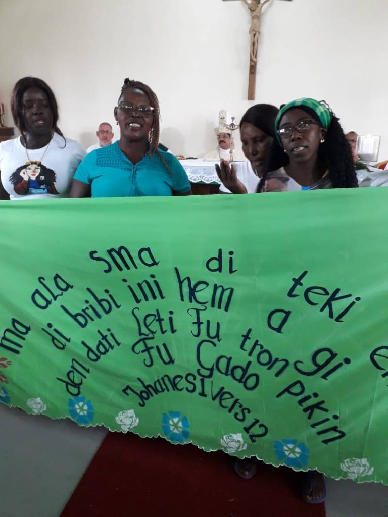 Na de dienst was er een gezellig samenzijn en werden er voornamelijk typisch Saramaccaanse gerechten geserveerd. Behalve Saramaccaanse werkers uit de katholieke gemeente was het traditionele gezag van het binnenland ook goed vertegenwoordigd. Een groot deel van het aanwezige traditionele gezag is ook catechist. Er waren delegaties van verschillende dorpen uit het Boven-Surinamegebied en uit het district Brokopondo. Ook bewoners binnen en buiten Paramaribo waren aanwezig in deze dienst. Na verschillende persoonlijke gesprekken bleek dat er ook Saramaccaners van verschillende christelijke denominaties aanwezig waren.