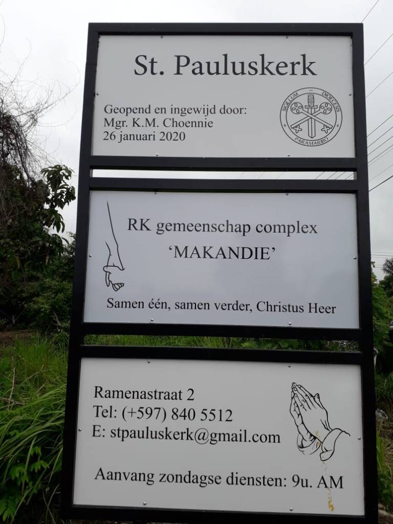 Op zondag 26 januari jongstleden vond de inwijding plaats van de nieuwe r.-k. kerk aan de Ramonastraat in Devisbuiten, Paramaribo. Die werd groots gevierd in een prachtig versierde kerk met invloeden van de Saramaccaanse cultuur. In een plechtige viering heeft de bisschop van Paramaribo, Mgr. Karel M. Choennie, de kerk ingewijd en geopend verklaard. De attributen die horen bij een rooms-katholieke kerk werden ook door de bisschop ingezegend. De naam van de nieuwe kerk is de St.-Pauluskerk, genoemd naar de apostel Paulus die tot bekering kwam en een centrale rol had in de verspreiding van het christendom.