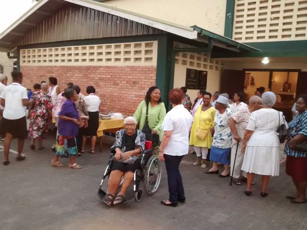 Onder het zingen van het slotlied ‘Zie ons hier verzameld’ liepen de aanwezigen – achter de misdienaars/misdienettes en de priesters – in processie de kerk uit naar de prachtige Mariagrot op het kerkplein. Met het bidden van drie weesgegroetjes werd deze mooie en bemoedigende viering van de 28e Wereldziekendag rond 7 uur afgesloten. De aanwezigen konden hierna nog een tijd napraten over de viering en ook genieten van de lekkere snacks en drankjes.