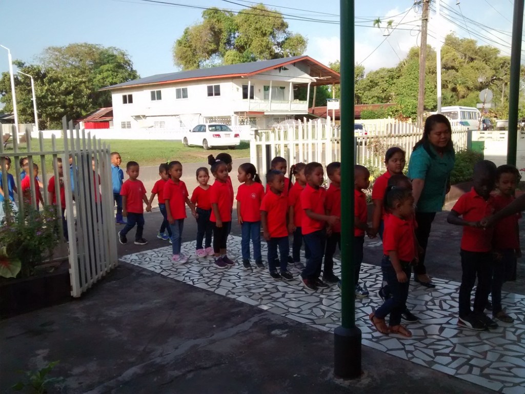 Rond 8 uur geeft schoolleider mevrouw Constance Ling het teken om in een stoet – twee aan twee – naar de kerk naast de school te lopen onder begeleiding van de overige leerkrachten. De kleintjes van de kleuterklas vooraan en aan het eind de leerlingen van de zesde klas. Heel gedisciplineerd gaat het eraan toe.