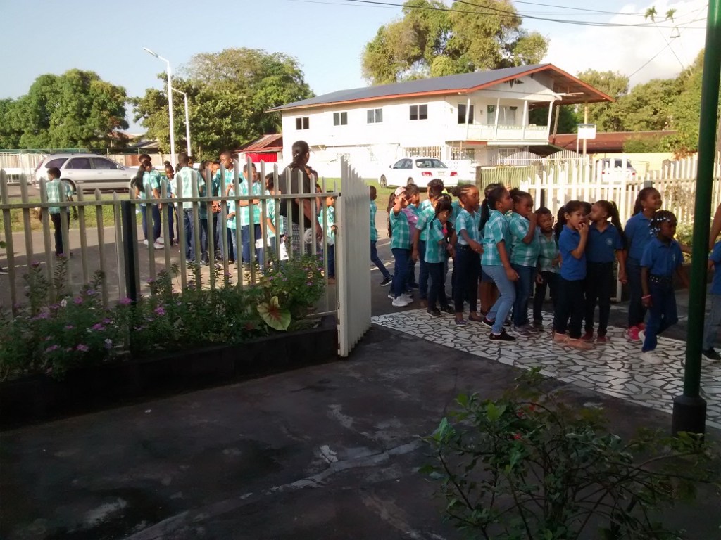 Het is een zonnige morgen – Aswoensdag 26 februari 2020. Rond 7.45 uur staan 180 leerlingen en 7 leerkrachten van de St.-Helenaschool netjes opgesteld rondom de vlaggenmast. Onder het eerbiedig – en uit volle borst – zingen van het volkslied wordt de Surinaamse vlag keurig gehesen door de leerlingen die vanmorgen de beurt hebben. Prachtig om het te ervaren en een goed voorbeeld voor anderen. Hierna is er nog gelegenheid om de twee liedjes die straks in de kerk zullen worden gezongen te repeteren.