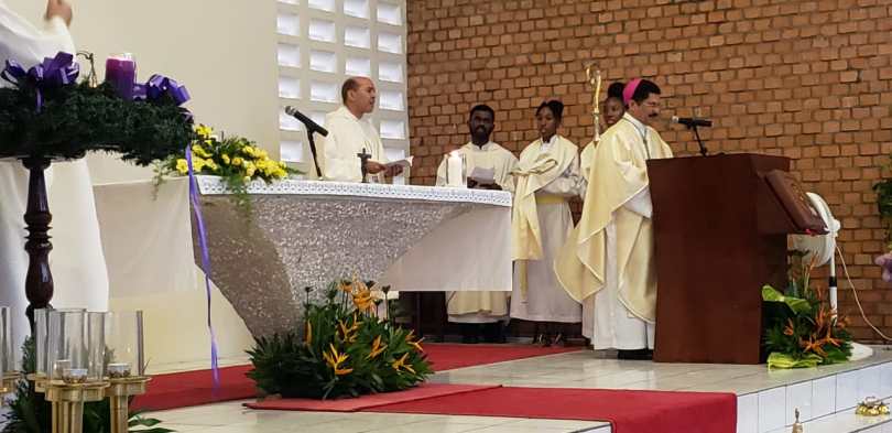 “Een kerkgebouw is niet alleen een plek waar je dichter bij God komt, maar is ook de plaats waar leden van gezinnen samenkomen en kracht putten om verder te gaan. Er heerst een andere sfeer in een kerk: wij kleden ons anders, lopen anders en spreken ook anders om in contact met God te komen”, vervolgde de bisschop. Hij spoorde aan om er een gewoonte van te maken als gezin, als volk naar de kerk te komen. “De huidige tijd heeft zijn bijzondere uitdagingen; de kinderen, de jeugd neemt op een andere wijze kennis tot zich. Via sociale media. Zij gaan met tegenzin naar de kerk, vinden het saai, spelen liever. Ouders, geef niet op. Jong geleerd is oud gedaan. We moeten in deze adventstijd sterk verlangen, hunkeren naar God zoals in psalm 107 is verwoord. Jongeren, stap uit de duisternis en kom naar de kerk om de warmte, de heiligheid en het licht te ervaren.”