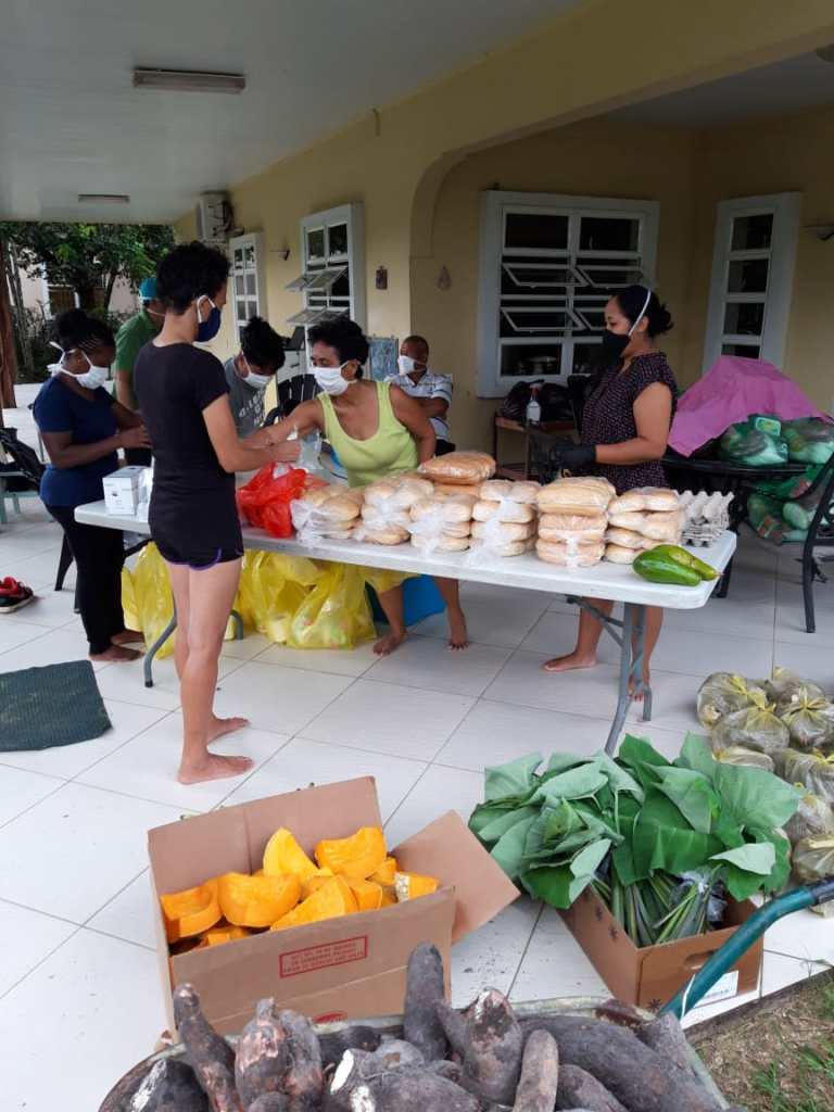 Het was vaderdag, en al vroeg kwamen er toezeggingen voor financiële donaties alsook voor levensmiddelen, groenten en fruit binnen. Aan het eind van de avond hadden de diaconiegroep, misdienaars en andere parochianen tezamen al 21 gezinnen opgegeven. Eenieder die inkopen doet voor het huishouden weet dat levensmiddelen niet goedkoop zijn, en zeker als je het doet voor een gezin. Voor een goed gevuld pakket werd daarom tussen SRD 100 en SRD 150 begroot per gezin. Tot zondagavond hadden wij SRD 1900 toegezegd gekregen en levensmiddelen verzameld, maar die waren nog net niet genoeg om alle 21 gezinnen te helpen. Maar wij hadden nog steeds vertrouwen en geloof dat het wel zou lukken.