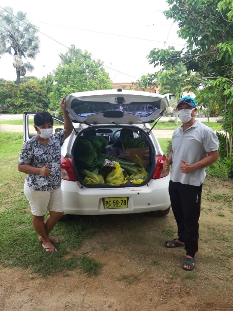 Rond zes uur dinsdagmiddag werden de auto’s ingeladen met pakketten voor de gezinnen en kon de distributie beginnen. Vanwege de avondklok moest die heel snel gebeuren, want om acht uur moest iedereen thuis zijn. Met genoeg vrijwilligers is het gelukt om dinsdagavond een groot deel van de Yepi- Makandragezinspakketten te verdelen. De rest zou woensdagmorgen verdeeld worden. Woensdag rond zeven uur ‘s morgens werden de groentepakketten door de vrijwilligers in orde gemaakt. Een van de trekkers kwam iets later aan en stond er even een beetje verloren bij. Ze zei dat ze verrast was, want alle voorbereidingen waren reeds gedaan door de vrijwilligers.