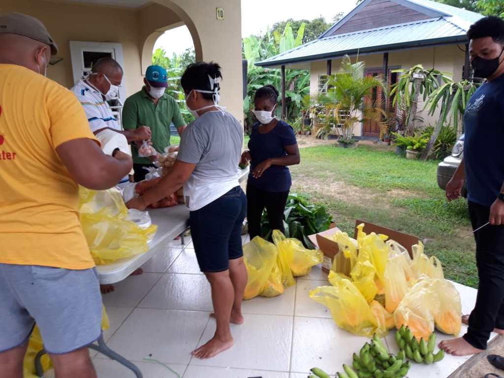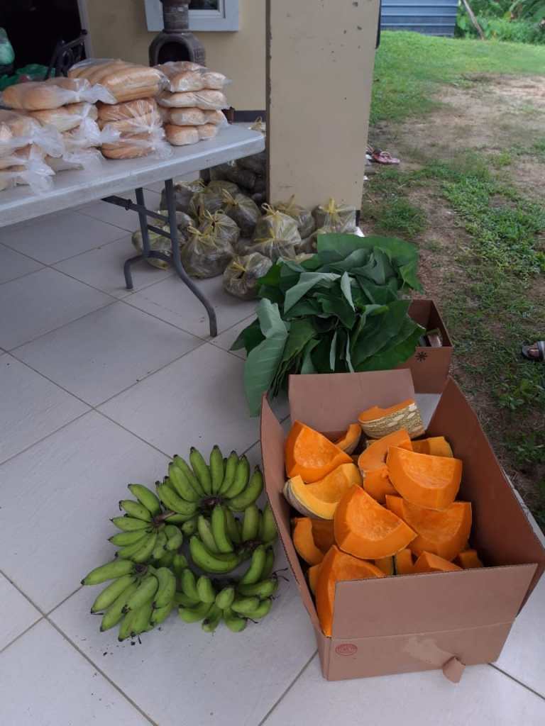 De parochieraadsleden was reeds gevraagd om de voorbereidingen en distributie van de pakketten op zich te nemen. Het zou namelijk hun eerste activiteit zijn als nieuwe parochieraad en dus een goede manier om mekaar beter te leren kennen. Dinsdagmiddag rond vijf uur waren de vrijwilligers present om de pakketten in orde te maken. Binnen een uur waren de pakketten ready voor distributie aan de gezinnen. Er waren nog cassave, eieren en groenten over; deze zijn aan bederf onderhevig, dus moest er op dat moment een plan worden gemaakt. Er werd besloten hiermee pakketten te maken voor seniore burgers in de parochie en in de buurt. Het werden totaal 20 groentepakketten.