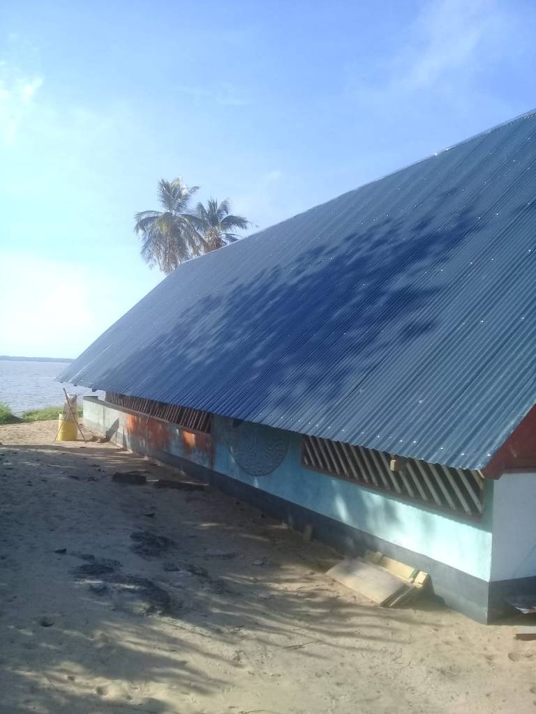 Galibi ligt aan zee en het zout vreet de dakplaten snel aan. Men is dus voortdurend bezig te repareren. Het is wel een van de meest mooie plekken om naar de kerk te gaan in Suriname. De zeewind en de machtige monding van de Marowijnerivier vormen een prachtig decor om God voortdurend te loven om de schoonheid van Zijn schepping. De zee dringt zich wel op en waarschijnlijk door de wereldwijde klimaatsverandering moet men nu een 75 meters lange zeewering rond de kerk plaatsen. Het is maar de vraag hoe lang de mens stand kan houden tegen de overweldigende kracht van de zee.