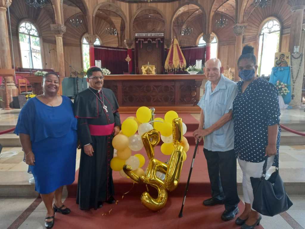 Het Christelijk Pedagogisch Instituut ( CPI) bestond op 10 oktober jl. vijftig jaar. Met een speciale dienst in de kathedrale basiliek werd deze bijzondere dag herdacht. Gezien de Covid-19 maatregelen moest de viering erg sober worden gehouden en mochten er maar vijftig personen in de dienst aanwezig zijn. Bijzondere gast in deze viering was de heer André Vonsée, de eerste directeur van dit instituut. Het CPI is een gezamenlijk initiatief van het Bisdom Paramaribo en de Evangelische Broeder Gemeente Suriname. Zij hebben in 1970 de Stichting Christelijke Onderwijzersopleiding opgericht (Sticon). De Stichting stelt zich tot doel het opleiden van leerkrachten voor het onderwijs in Suriname. Mevrouw Heidi Yorks, de huidige directeur, gaf in haar openingswoord een historisch overzicht van het ontstaan en groei van het CPI. Vijftig jaar lang heeft het CPI kwalitatief hoog opgeleide leerkrachten afgeleverd aan de maatschappij. Het beroep is in de loop der jaren minder aantrekkelijk geworden. Landelijk loopt het aantal aanmeldingen om leerkracht te worden af. Door de centrale inschrijving door de overheid was het zelfs zo dat er twee jaar geleden geen nieuwe inschrijvingen aan het CPI werden toegewezen. In de sfeervolle dienst waarin pater Esteban Kross en Mgr. Karel Choennie voorgingen, werd het accent vooral gelegd op de roeping tot leerkracht en speciale zending van God om alle volken te onderwijzen. De tekst van de profeet Jesaja 6,8 stond centraal: ‘Hier ben ik, zend mij’.