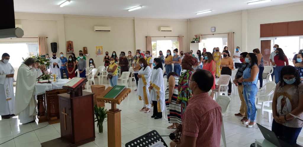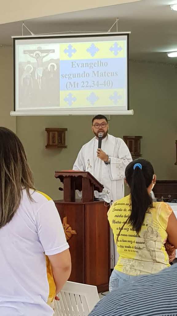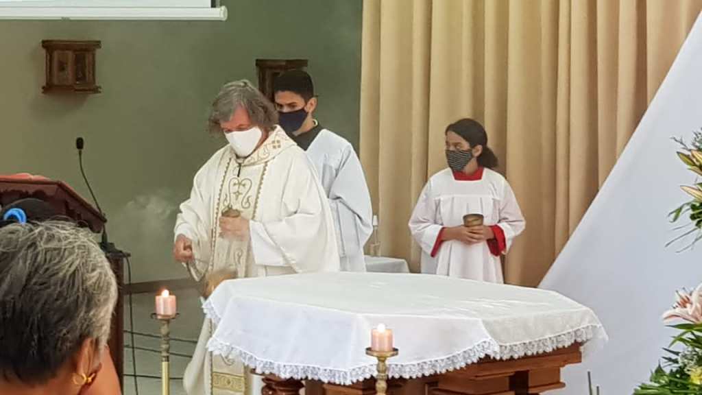De tweede priester die voorgaat in de mis, stelt zich na de mis voor als padre Mapa(35). “Mijn naam is moeilijk, noem me maar bij mijn werknaam,” zegt de lange priester. Padre Mapa is van Minas Gerais en komt als redemptorist uit de ‘Provencia do Rio de Janeiro’. Op 22 november zal het zes jaar geleden zijn dat hij is ingewijd voor het geestelijke ambt. De missie van de onlangs gearriveerde priester is om pater Ricardo te ondersteunen in de parochies van Livorno en Latour en omgeving. “Minimaal voor 4 jaren,” zegt hij. In zijn preek zegt Mapa om God lief te hebben en dat Jezus de grootste verwijzing is van liefde voor de Vader. “We moeten God liefhebben zoals Jezus zijn Vader liefheeft in een overgave van het leven, en een liefde die zelfs aan het kruis voortduurt. ‘Vader in uw handen geef ik mijn Geest.’ God liefhebben houdt in dat je ook je naaste liefhebt. Op dit pad van liefde voor God en de naaste ontmoeten we Maria die ons leert onvoorwaardelijk ja te zeggen tegen God en aandachtig te zijn voor de behoeften van onze broeders en zusters en hen met mededogen te helpen.”