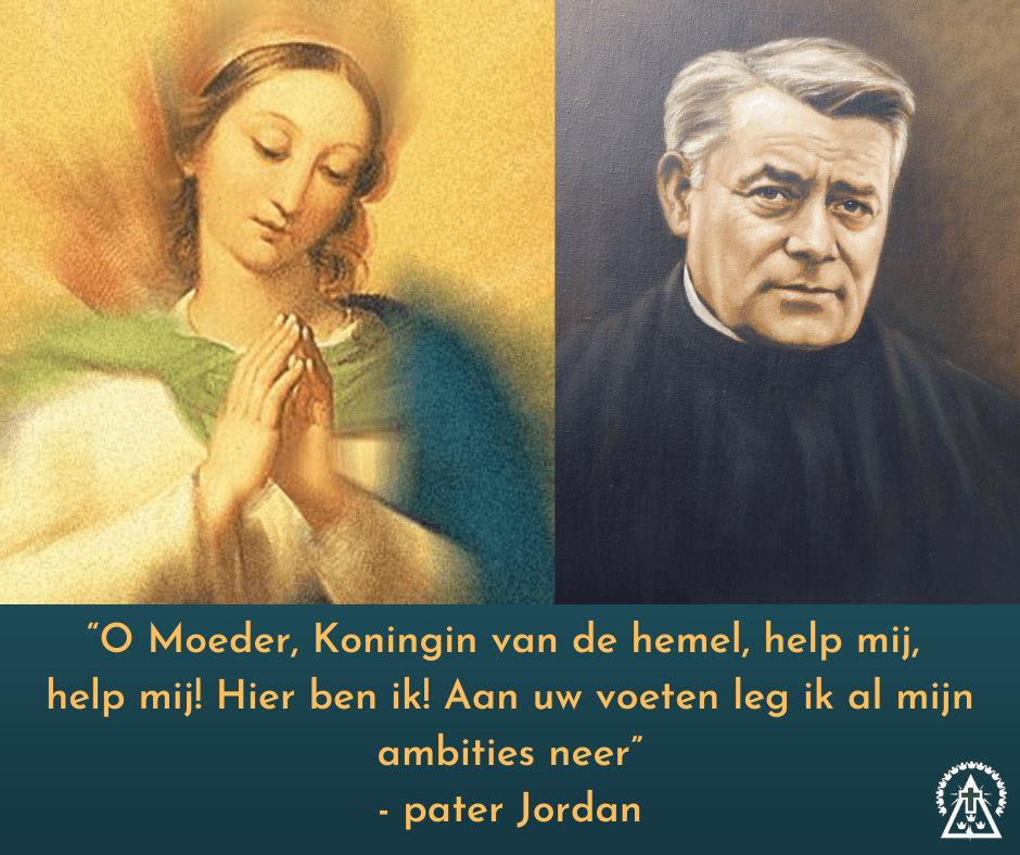 Op het feest van de Onbevlekte Ontvangenis van Maria geloven we dat Moeder Maria vanaf haar conceptie geheel zonder zonde was. Op 25 maart 1858 zegt Maria bij de 16e verschijning aan Bernadette Soubirous dan ook: Ik ben de Onbevlekte Ontvangenis. De liefde die pater Jordan had voor Maria was onmetelijk groot. Hij bad dan ook: O Moeder, Koningin van de hemel, help mij, help mij! Hier ben ik! Aan uw voeten leg ik al mijn ambities neer (eigen vertaling uit het spirituele dagboek van pater Jordan- Portugees DE III 18,21). Pater Jordan zegt in een van zijn toespraken dat we de Heilige Maagd Maria altijd moeten vereren en dat Zij de Sociëteit vanaf het begin heeft bijgestaan. Ze is onze Moeder, Moeder van onze familie! Zoek daarom je toevlucht bij Haar met al uw noden, en Zij zal u de genaden schenken (p. Jordan – Alocuções 6 de 08/12,1896). Maria was voor pater Jordan de stralende zon bij dageraad die veel licht brengt in het leven van de gelovigen en de Salvatoriaanse missie. Laten we daarom net als pater Jordan moeder Maria altijd vragen om hulp en Haar ook eren, want alles wat we Haar toevertrouwen, vertrouwen we ook aan God toe.