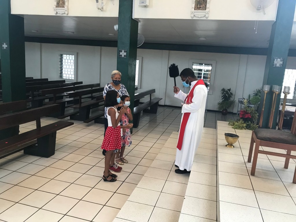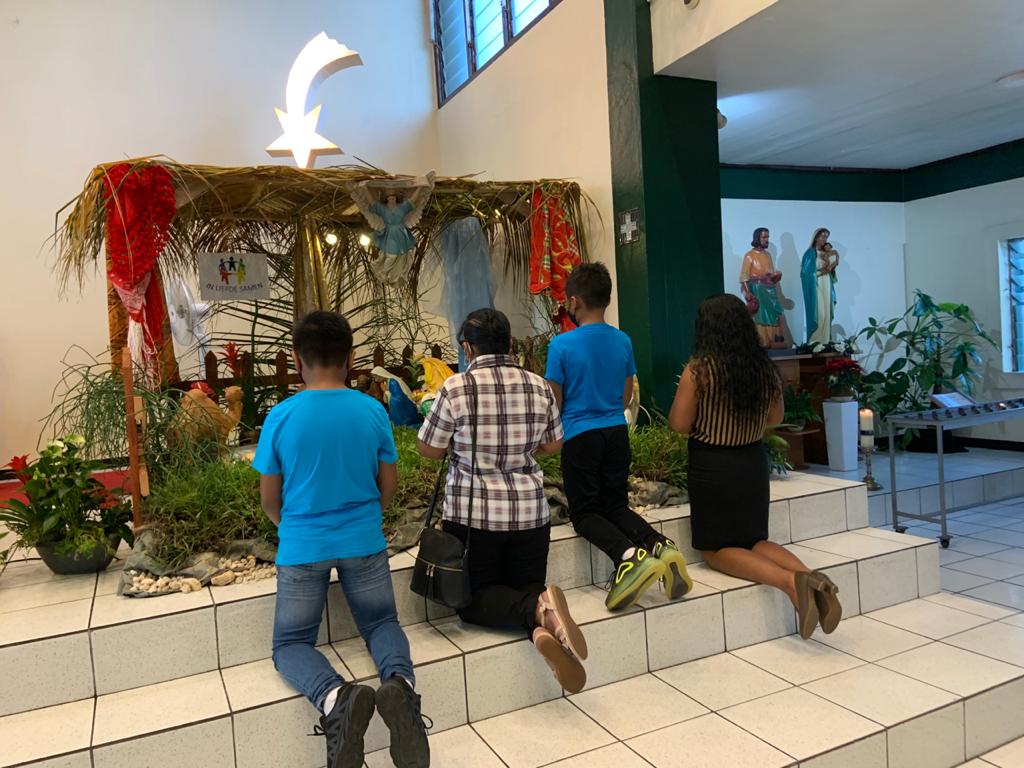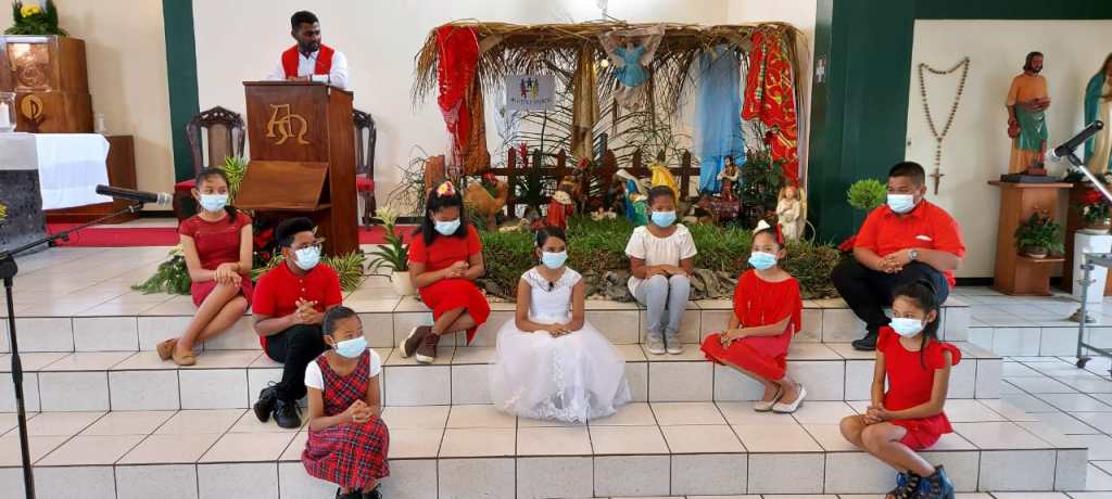 Een gelukkig en gezond 2021 wensen wij van parochie Paramaribo-Noord u toe. Dit is een verslag van de vieringen die wij gehouden hebben tijdens de feestmaand van 2020. Zoals elk jaar het geval is, treft pater Kumar Irudayasamy SDS, pastoor van parochie Paramaribo-Noord, ruim van tevoren voorbereidingen voor de vieringen in de (feest)maand december samen met parochie-assistenten, verantwoordelijken en medewerkers van de werkgroepen voor de kerkliturgie (lectoren, cantors, organisten, de technische en versiergroep, kosteres, misdienaars, zieken- en bejaardenzorg, koren, parochieraad, communie-uitreikers). Het is het begin van het liturgische jaar en het zijn de vieringen in de advents- en de kersttijd. De kersttijd begint aan de vooravond van Kerstmis en eindigt op de avond van de 1e zondag na 1 januari. In de kersttijd staan centraal de menswording van God en het begin van Christus’ verkondiging van het evangelie.