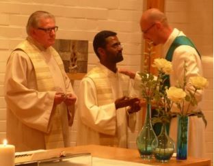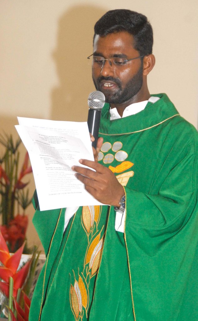 Het was zaterdagavond 9 januari 2016 omstreeks 5 uur ‘s middags Indiase tijd toen de wijdingsviering van pater Kumar begon en werd geleid door bisschop Susai Manickam van het bisdom Sivagangai – in de provincie Tamil Nadu gelegen in het zuiden van India. Het was een mooie en plechtige viering. Pater Kumar vertelt verder: “De volgende morgen, zondag 10 januari 2016 om 8.00 uur ‘s morgens heb ik mijn 1e H. Mis opgedragen in mijn dorp Kummangulam (in het bisdom Thanjavur) in dezelfde provincie Tamil Nadu. De viering was in mijn moedertaal Tamil, een van de officiële talen van India. Ik moest even wennen om weer te spreken en te zingen in Tamil, omdat mijn hele priesterstudie in filosofie en theologie – een periode van 11 jaar – uitsluitend in de Engelse taal is geweest. Ik was vanaf mijn 17e in het seminarie en de voertaal is Engels, omdat de seminaristen uit verschillende provincies van India afkomstig waren.”