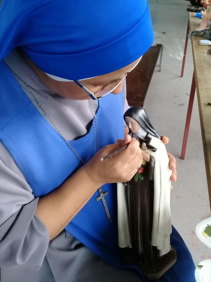 Als charisma heeft onze religieuze familie de evangelisatie van de cultuur. Die zit zo diepgeworteld in ons dagelijkse leven dat al onze activiteiten daarop gericht zijn. Door het opknappen van beelden en de namen erop te plaatsen, kunnen de gelovigen kennismaken met de verschillende heiligen en hun deugden. Ook het maken van rozenkransen met tasjes, linnen voor de Heilige Mis en houtwerkjes voor het huis hebben allemaal een evangeliserend karakter.