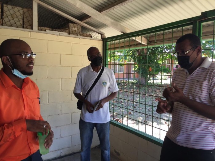 Wij besluiten spijkers met koppen te slaan. De commissie zal nagaan waar het projectvoorstel allemaal is ingediend en wat de status is. Iedereen zal gebruikmaken van zijn netwerk om sneller in actie te komen om de kinderen van Paranam en La Vigilantia niet te onthouden van het recht op onderwijs. De r.-k.-cluster Para/Wanica besluit om de begroting van de toilettengroep af te wachten en de bijdrage daarvoor te bestemmen. Enkele dagen later is de offerte binnen, het is iets meer dan het opgehaalde bedrag van SRD 15.700. Maar het is al een grote stap om de toilettengroep te renoveren. Op 19 oktober jl. overhandigden Vincent Gordon en Marius Weewee, vertegenwoordigers van de r.-k.-cluster Para/Wanica het bedrag aan het RKBO dat zal toezien op de uitvoering en betaling van de renovatie van de toiletten van de Heilig Hartschool en de Giovanni Montinischool in la Vigilantia.