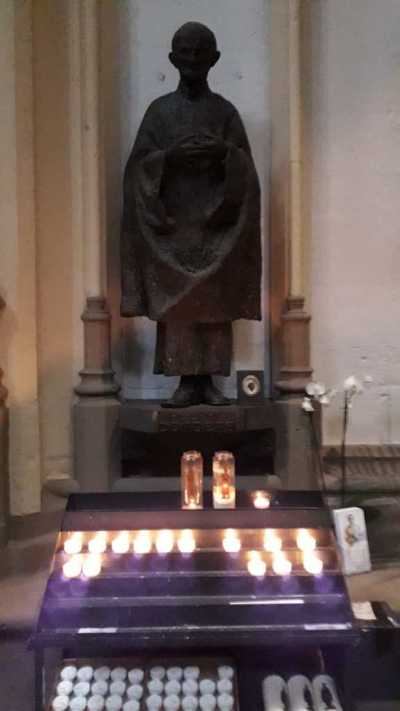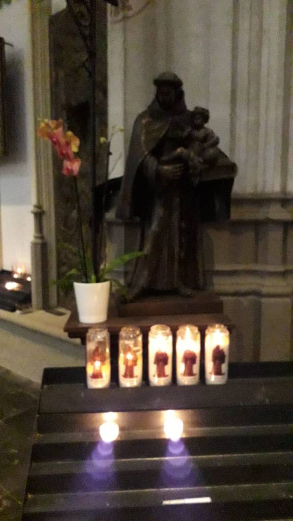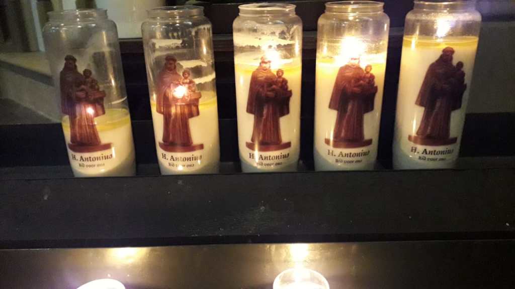 Wat waren wij blij dat wij deze noveenkaars konden kopen. Na de aankopen gingen we naar de Sint-Jans kathedraal, voor mij de eerste keer. We hebben in het Mariahoekje gebeden voor de zielenrust van de overledenen en maakten daarna een wandeling door deze oude, beroemde kerk. Mijn vriend Max bracht me ook naar de nis van Peerke Donders. Ik had mij er niet op voorbereid en jullie kunnen wel begrijpen dat de emoties hoog waren… de gedachten aan Dylan kwamen in overvloed naar boven… daarnaast ook zoveel verdriet, pijn en smart om het overlijden van mijn zus en broer een jaar geleden en nu mijn nichtje en zwager. Dit raakt je diep emotioneel. Daarnaast is er nog een zoon van de familie over, die nu helemaal alleen in dit aardse leven is overgebleven. Hem helpen om dit te verwerken, is een immense taak. Ik heb foto’s gemaakt van de nis van Petrus Donders en later ook van Moeder Maria en St.-Antonius. Het was een waarlijk moment van het ervaren van goddelijke krachten, krachten die mij ondersteunden in deze wankele periode.