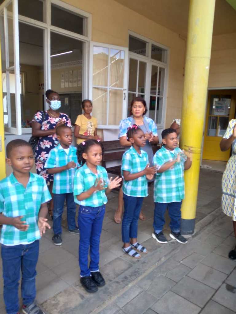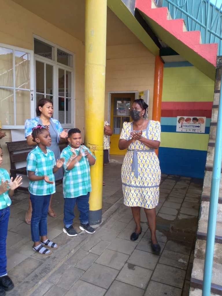 Heel wat personen hebben gewerkt aan de totstandkoming van het project renovatie toilettengroep van de St. Thomas van Aquinoschool in Zorg en Hoop. Daar komen ook de mensen bij die een bijdrage geleverd hebben aan de feestelijke officiële overdracht van de pas gerenoveerde toilettengroep met overkapping. Alle namen opschrijven brengt het risico met zich mee dat een naam gemist wordt, vandaar de benaming ‘TEAM’. Dit TEAM, samen met de schoolleiding, alle leerkrachten en uiteraard de leerlingen, waren dan ook bijzonder trots en ingenomen toen op woensdag 22 juni jl. de feestelijke overdracht plaatsvond en dank kon worden uitgebracht aan de Heer en aan de Staatsolie Foundation for Community Development die de financiering van dit project op zich had genomen.
