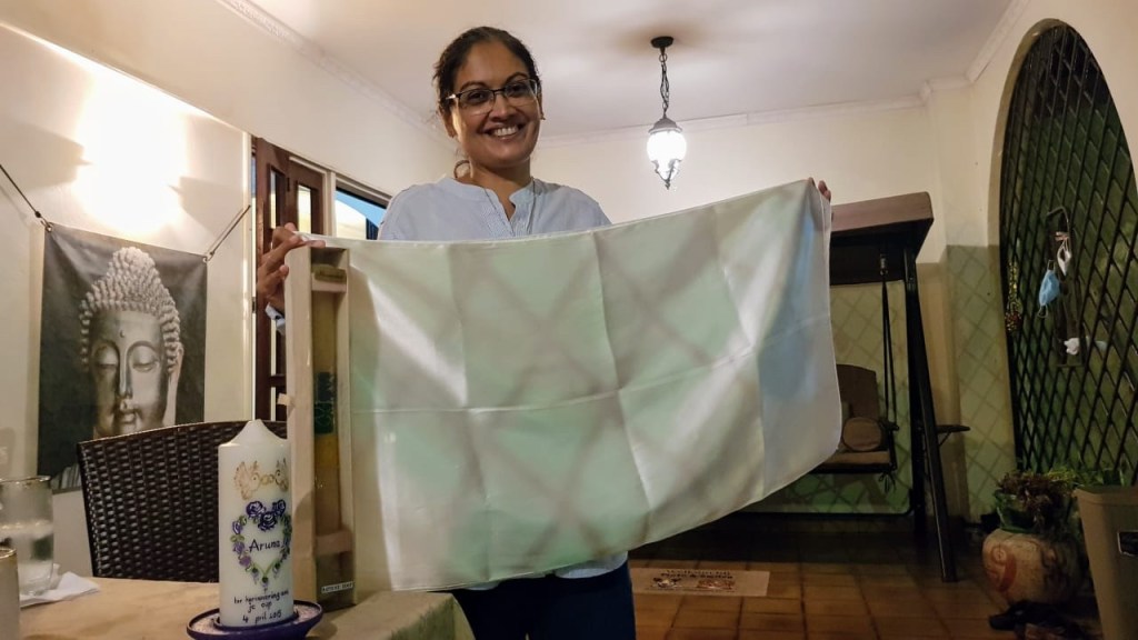 ‘Ik weet niet of ik het wil doen. Geef me wat bedenktijd,’ zegt Aruna Mungra (47). Na enkele dagen stemt ze toe voor een interview. ‘Ik doe het als service voor God en om vrouwen in moeilijke thuissituaties te empoweren,’ geeft ze als redenen. Aruna’s grootvader is Johannes Mungra naar wie de bekende straat is vernoemd. ‘Hij was katholiek omdat hij als kind in het Rajpur-internaat verbleef, maar hij was niet belijdend en mijn aadji of oma beheerde een mandir. De meesten van ons zijn hindoe. Een enkeling heeft een ander geloof, omdat die aangetrouwd is of het geloof van de partner heeft aangenomen, maar van huis uit zijn de Mungra’s hindoes.’