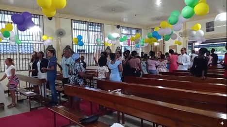 Het is zaterdag 15 oktober 2022 en de Barmhartige Samaritaankerk is feestelijk versierd met gekleurde ballonnen. De liturgiegroep heeft een jongerendienst georganiseerd getiteld Jezus, onze hoop. Deze samenkomst is heel in het bijzonder voor de jongeren van Flora en omgeving. De organisatie wil de jongelui terugbrengen naar de Heer. Volgens zuster Marabel ervaren ook zij de situatie in ons land als precair, zorgelijk. “Je merkt dat ze weinig hoop hebben ooit uit hun moeilijke omstandigheden te komen. Maar de Heer zegt: Ik ben jouw hoop. Geloof in Mij en vertrouw op Mij, dan zal Ik het onmogelijke, mogelijk maken.”