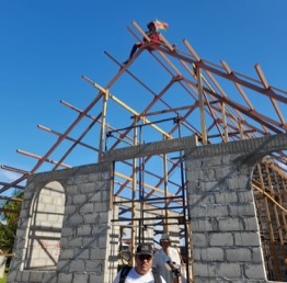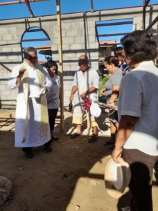 Eerst werd het oude gebouw gesloopt en vijf dagen later vond de eerstesteenlegging plaats. Pater Agustinus deed de inzegening en daarbij legde hij de eerste steen. “Het is voor ons een zeer bijzonder dankbaar moment en een zegen om de kerk te mogen bouwen,” zegt Ermie verheugd. De bouwwerkzaamheden had een vlot verloop en een maand later werd reeds het hoogste punt bereikt. Dat was een moment waar pater Agustinus kwam met wijwater; er werd ook een vlag op het hoogste punt vastgenageld.