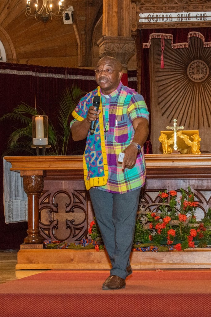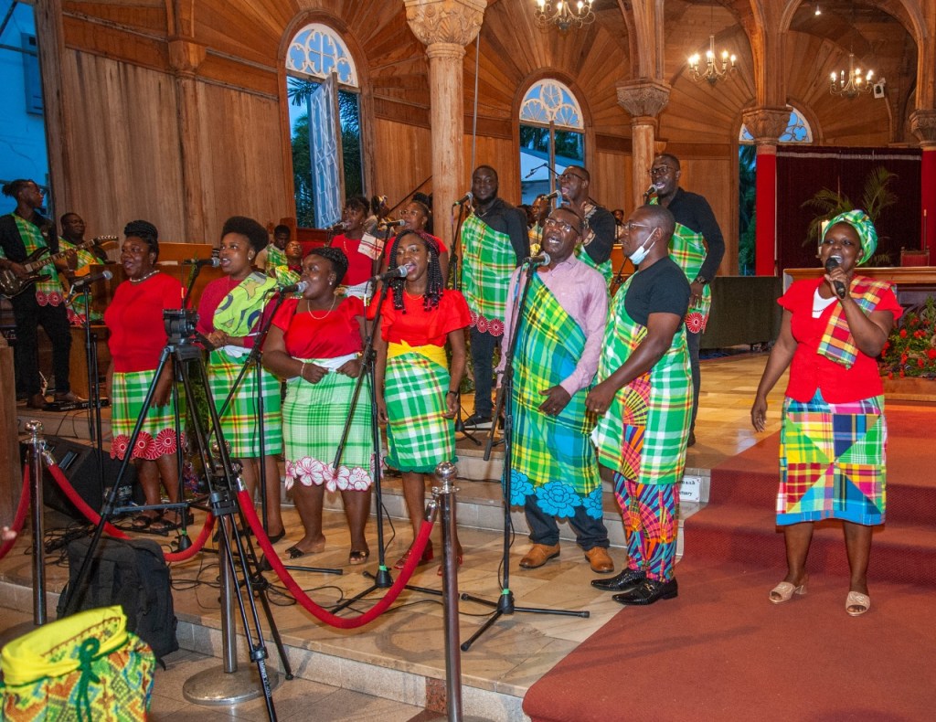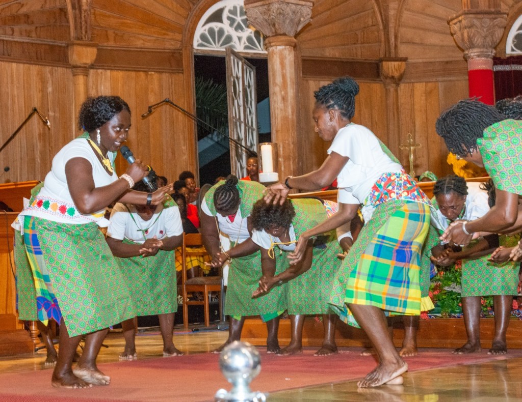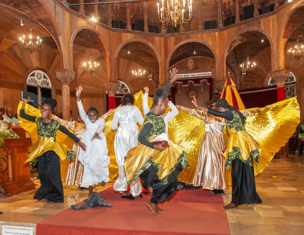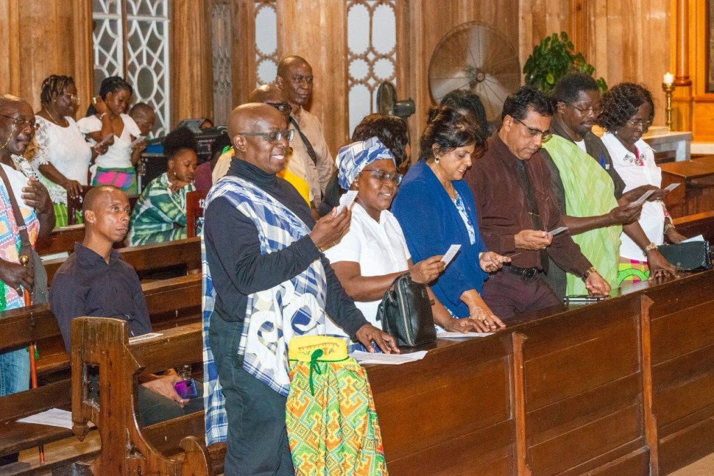 Als een kleurrijke ruiker kwamen de Saamaka en Matawai (gemeenschappen) bij elkaar in de kathedrale basiliek om de Heer te loven en te prijzen. Gestoken in klederdracht in allerlei kleuren en patronen kwamen groot en klein van verschillende christelijke kerken bij elkaar. Het was een bijzondere interkerkelijke dienst, gehouden op zondag 13 november jl. Aanwezig waren gelovigen van de rooms-katholieke Kerk (RK), de Evangelische Broedergemeente (EBG), volle evangelie-gemeenten en andere christelijke kerken zoals de Zevende Dag adventisten en de Vergadering van gelovigen (ook wel genoemd Konmakandra fu bribiwan). Belangstellenden en andere genodigden waren ook aanwezig.