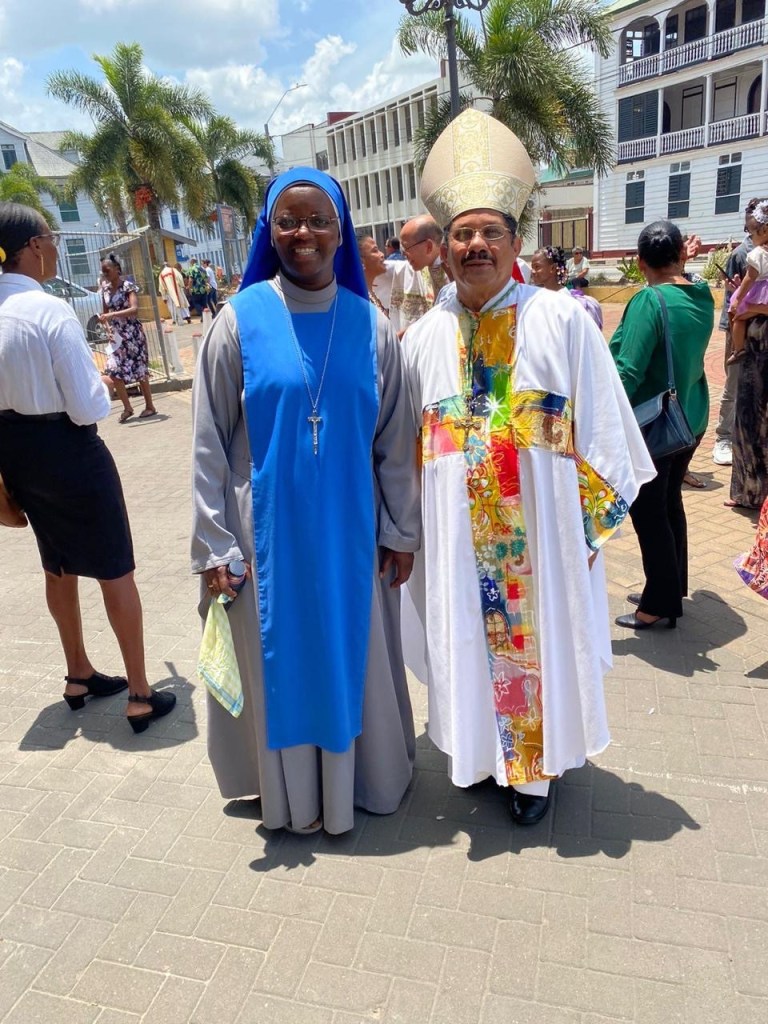 Ik mocht mijn vormingsjaren in Amerika doorbrengen. Daarna nog twee jaren als assistente van de novicen meesteres in het noviciaat. Toen werd ik in 2017 gevraagd om in Suriname de leiding van de missie over te nemen van Moeder Esperanza. Er zou een kleine verandering plaatsvinden; het Maria Internaat werd toen ons voornaamste apostolaat. Met veel enthousiasme keerde ik terug naar Suriname, als missionaris tussen mijn eigen mensen. Met alle uitdagingen meegeteld kijk ik vol dankbaarheid terug naar hetgeen wij in de afgelopen zeven jaren hebben kunnen realiseren, vooral in de vorming van de vele jonge dames die aan onze zorg zijn toevertrouwd.