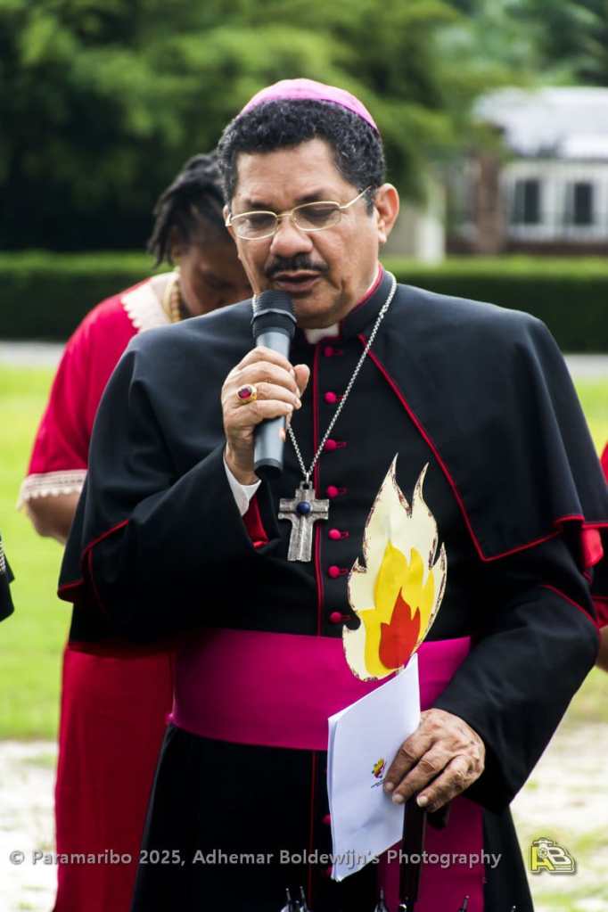 Wie zegt dat regen een vlam dooft, is nooit met Pinksteren in Paramaribo geweest temidden van vurige katholieken. Ondanks de regen op 9 juni brachten de Charismatische Vernieuwing en de bisschop de viering dansend naar de straten, waar hoop en geloof als een laaiend vuur werden verspreid. Met de energieke brassband kwam de stad tot leven, terwijl een menigte in het rood zich voortbewoog als een vurige stroom – een krachtig symbool van de Heilige Geest, die harten aanraakt en levens voorgoed vernieuwt.