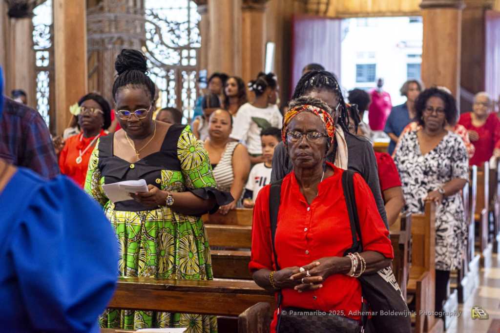 Met het krachtig lied “A Gado Disi A De Wan Bigi Gado” barstte de lofprijzing los. Schoenen werden uitgeschopt, lichamen bewogen vrij en de bisschop danste mee in de Geest. Op dat moment leek niets de lofprijzing te kunnen stoppen. Het publiek zong vanuit het hart. Een gedachte kwam in mij op: Zou het niet prachtig zijn als gelovigen in alle kerkdiensten zo vrij en vol overgave God zouden prijzen? Niet alleen hier, niet alleen op speciale vieringen-maar altijd, met een vuur dat nooit dooft.