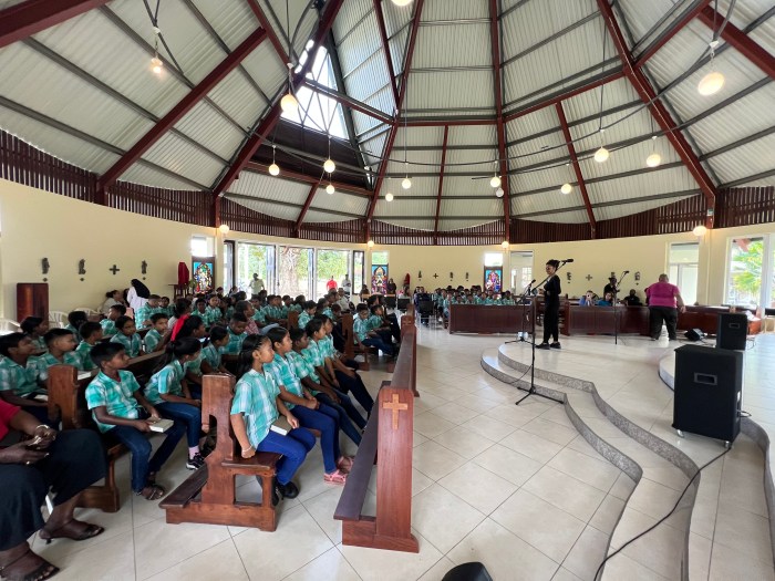 Leerlingen in de kerk